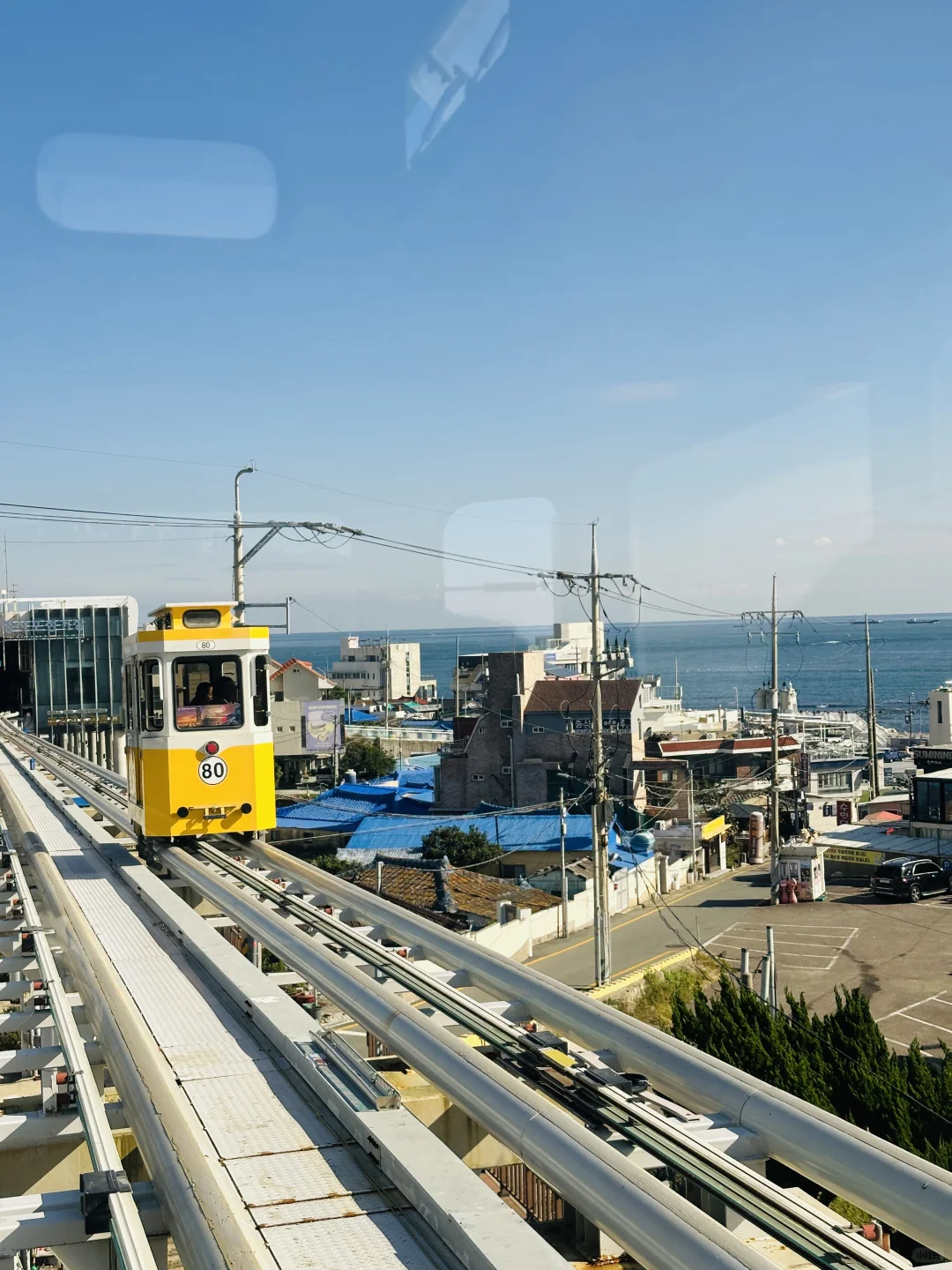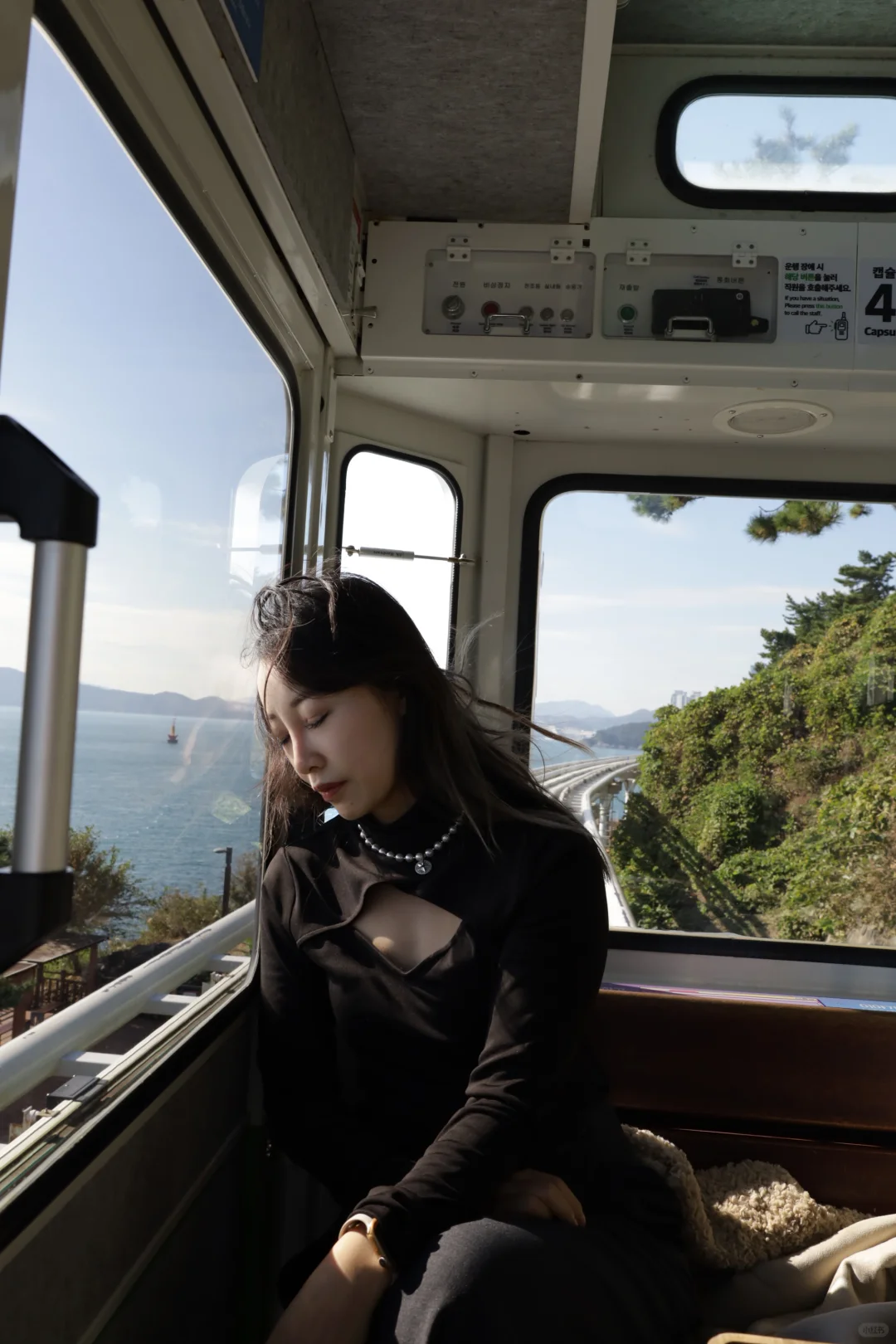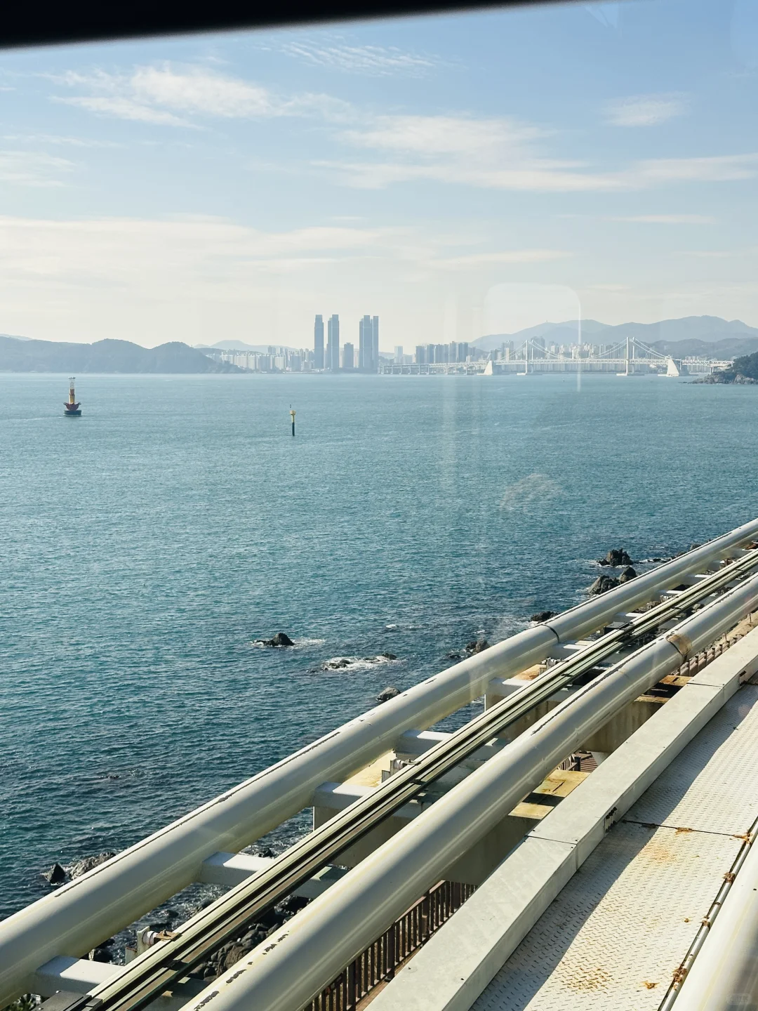 釜山真的很适合放松 咖啡店的风景也是绝佳了,分为三层 每一层都面朝大海 时间不够,不然准备一排喝下来 釜山的风景很不错,应该都不会踩雷 去的那天天气也好,可以坐一下午,超级治愈 半小时的胶囊💊小火车 沿着海岸线行驶 突然感慨,海岸线跑一下步也是太chill 适合生活的出逃 拍照也是分分钟出片