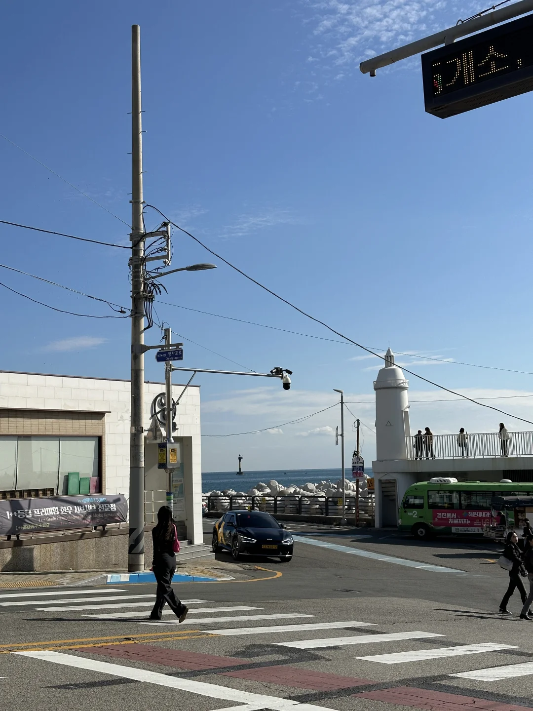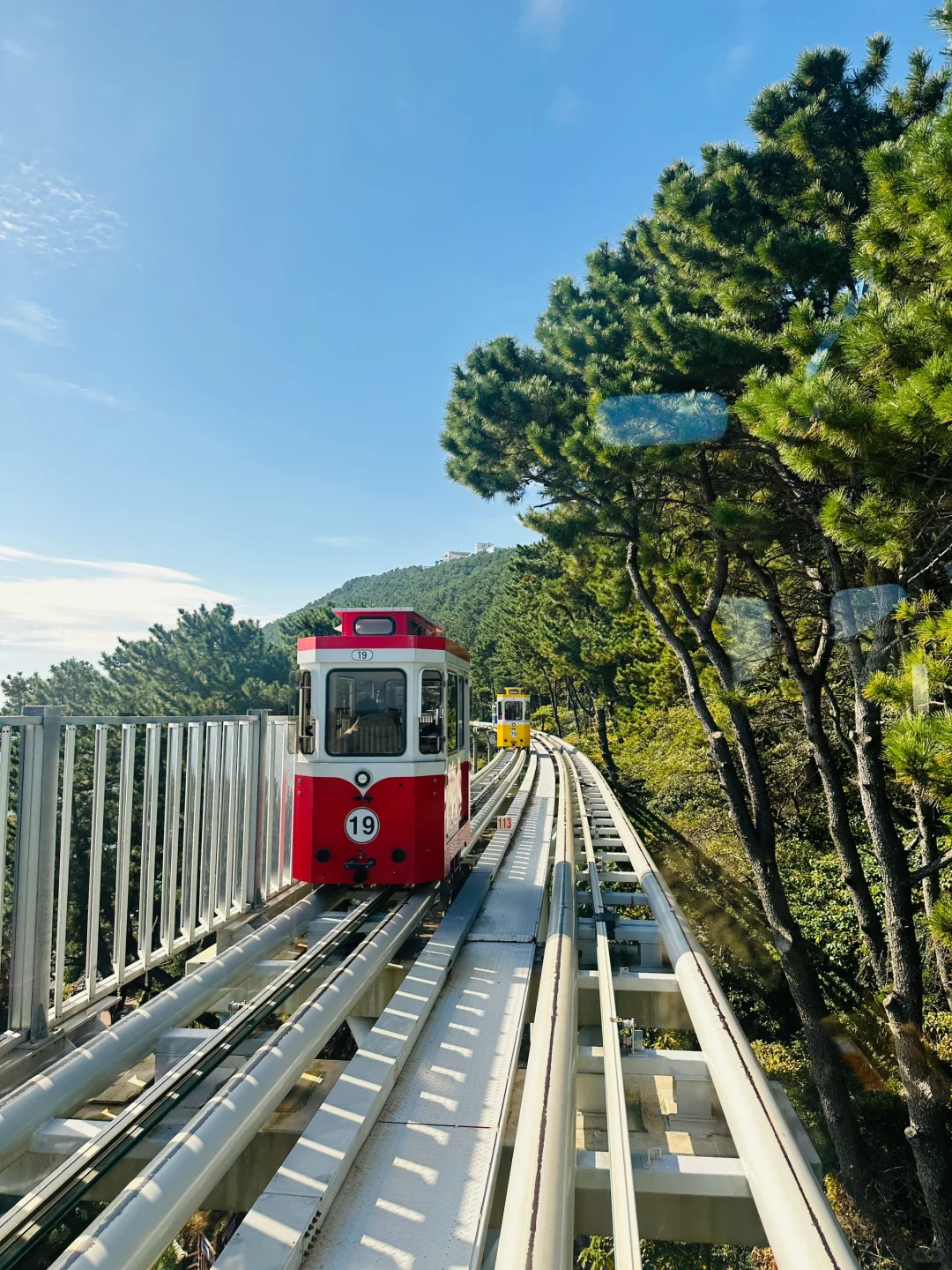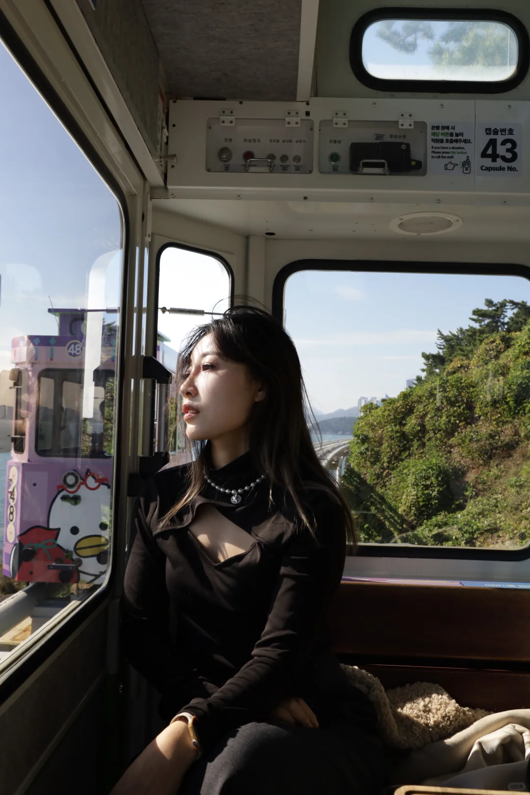 釜山真的很适合放松 咖啡店的风景也是绝佳了,分为三层 每一层都面朝大海 时间不够,不然准备一排喝下来 釜山的风景很不错,应该都不会踩雷 去的那天天气也好,可以坐一下午,超级治愈 半小时的胶囊💊小火车 沿着海岸线行驶 突然感慨,海岸线跑一下步也是太chill 适合生活的出逃 拍照也是分分钟出片