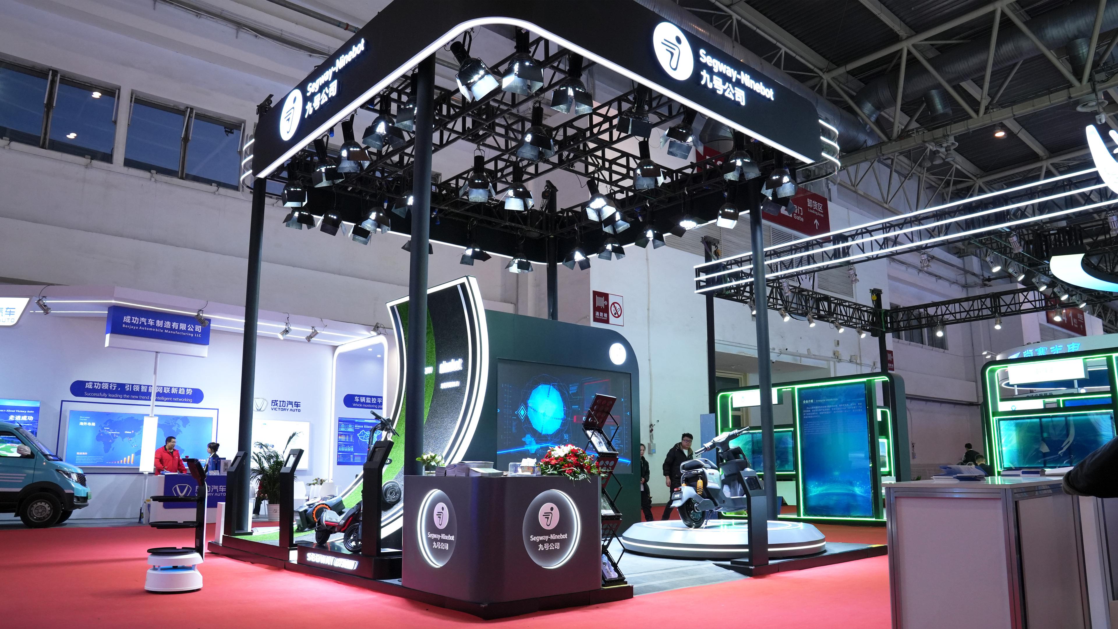 其中,作为数字科技链展区的参展企业之一,主打科技创新和智能制造的九号公司在展台上展出了九号电动MMAX2、九号平衡车L8和九号送物机器人等多款产品。