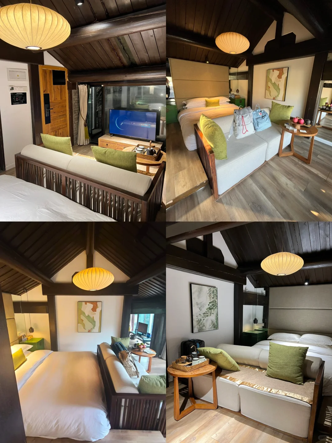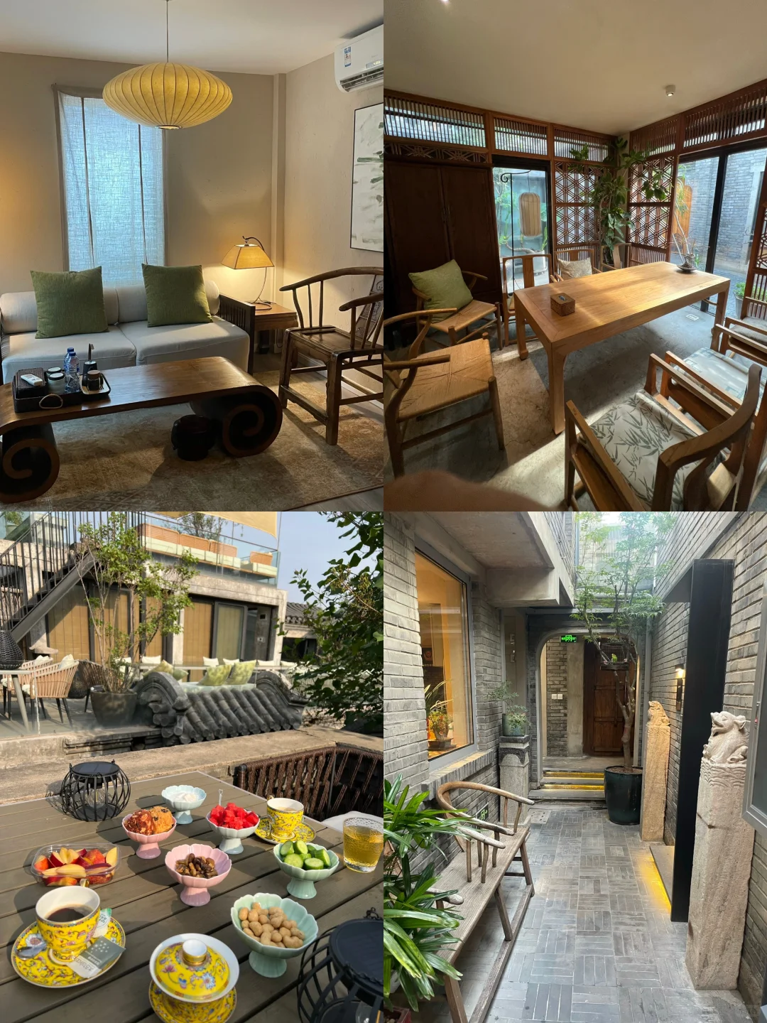 酒店是四合院布局,青瓦木垣的外观设计古韵浓郁,现代家居与现代装饰又让房间多了一些清新。我真的很爱这个房间的沙发,真的很大,中午可以和朋友坐在沙发上吃着北京小吃、看电影、聊天