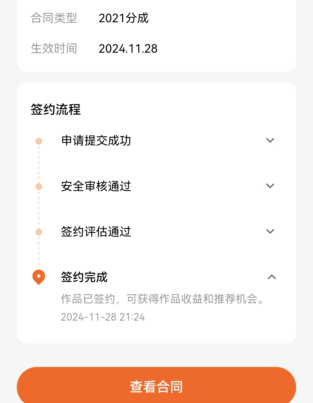 在这里,我想与大家分享一个重要的经验:签约一定要先把手续走完,不然没有收入。在网络小说平台上,签约是获得收入的前提。只有走完签约流程,你的作品才能正式获得平台的认可,从而获得收益。因此,我们在创作过程中,不要急于求成,要把签约手续当作重要的一环,确保顺利完成。