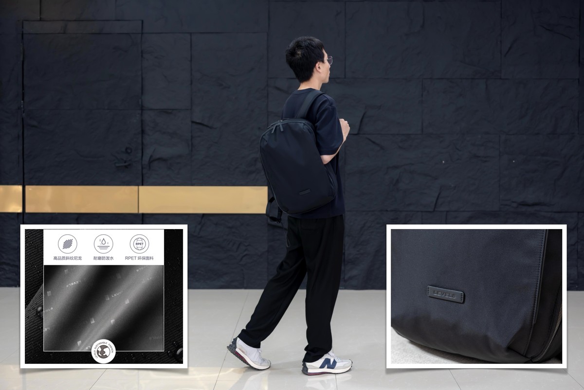 地平线 8 号在设计方面向来独具匠心,这款城市通勤胶囊系列背包也不例外。背包包体采用的高品质斜纹尼龙面料,带来介于羊皮纸与帆布之间的独特触感,瞬间就让我感受到它与普通涤纶包的差异。这种面料不仅触感好,还具备超高的耐磨抗撕裂以及防泼水、防潮性能,其自然纹理更是赋予了包体高级质感。
