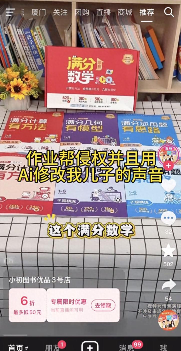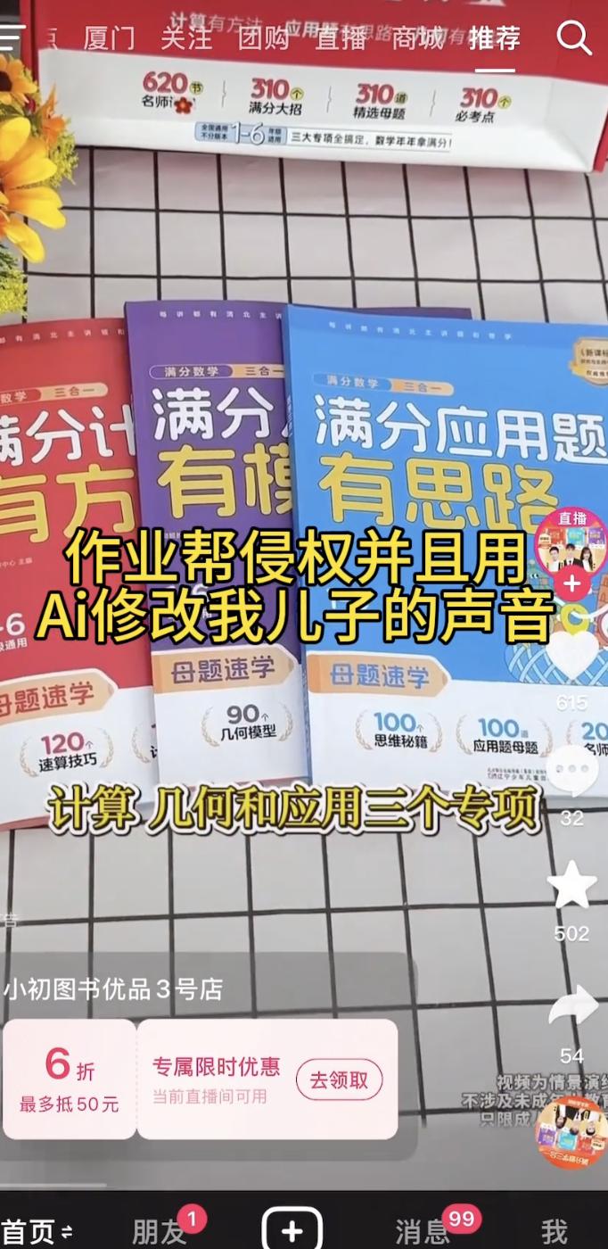据博主“辣妈行动西西”发布的声明及视频证据显示,其原创内容中记录儿子日常学习场景的视频被作业帮全网分发,且原视频中孩子的真实声音被AI技术替换为机械合成音,用于推广一款宣称“8个月学完6年小学数学”的课程。更令博主愤怒的是,侵权视频评论区出现大量针对其儿子的恶意辱骂,甚至有用户质疑其“利用孩子炒作”,而博主明确表示从未使用过作业帮产品,并强调“儿子数学能力与作业帮课程无关”。