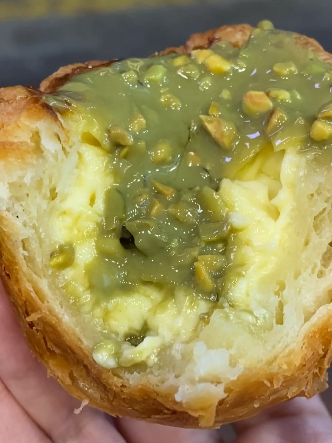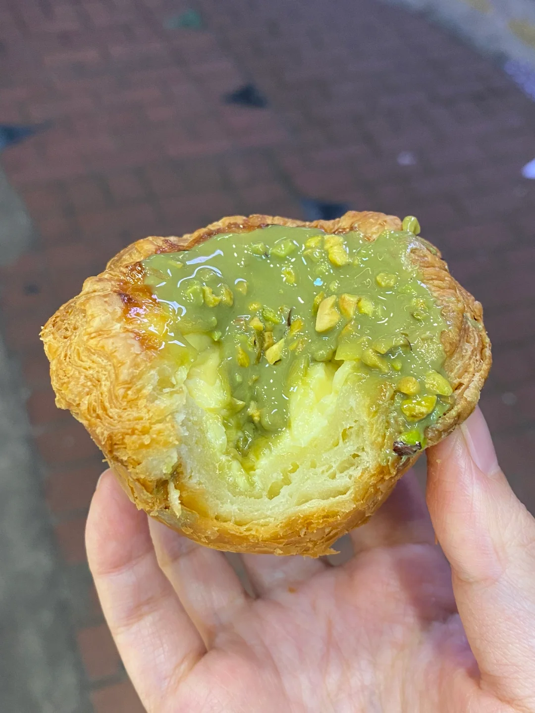 bonbon买的开心果黑糖麻薯酥皮蛋挞!! 铺满表面的开心果酱+酥皮蛋挞+最底部的黑糖麻薯,没有一口咬下去不让我感到幸福的,好吃到我原地晕厥。 流动的开心果酱一入口甜得我翻跟头,然后又是蛋挞芯蛋液的香甜,包裹着它们的酥皮咔呲咔呲,你被哄得找不着北,接着黑糖麻薯又登场!糯糯黏黏,又脆又酥,又软又糯,真是不知如何是好! 太伟大了,太盛大了! ps. 甜度有点高哈,适合来月经的时候吃,多巴胺旺盛得在脑子里横冲直撞!