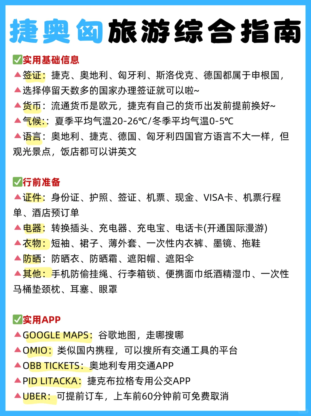 这样既浪费时间,玩的也不愉快~今天我就把捷克+奥地利+匈牙利旅游当地的一些情况分享出来给大家‼️