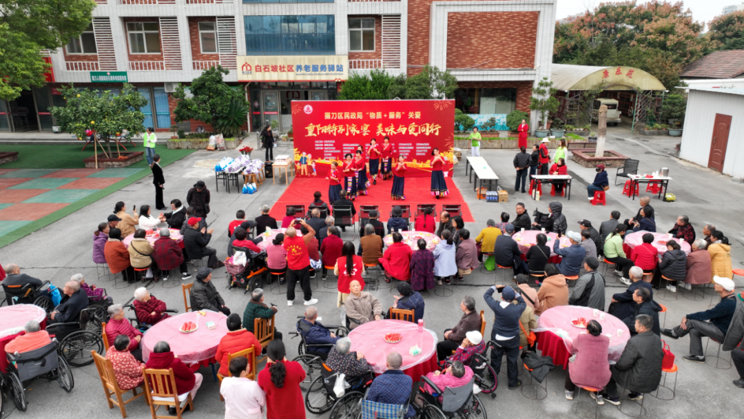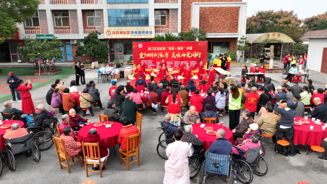 重阳佳节即将到来,10月27日,荆门市掇刀区民政局在掇刀石街道白石坡养老院举办“重阳特别家宴·美味与爱同行”长寿宴活动。荆门市女企业家协会会员、爱心企业代表、白石坡社区工作人员、众悦社工、爱心志愿者与养老院90余名长者共聚一堂庆重阳。