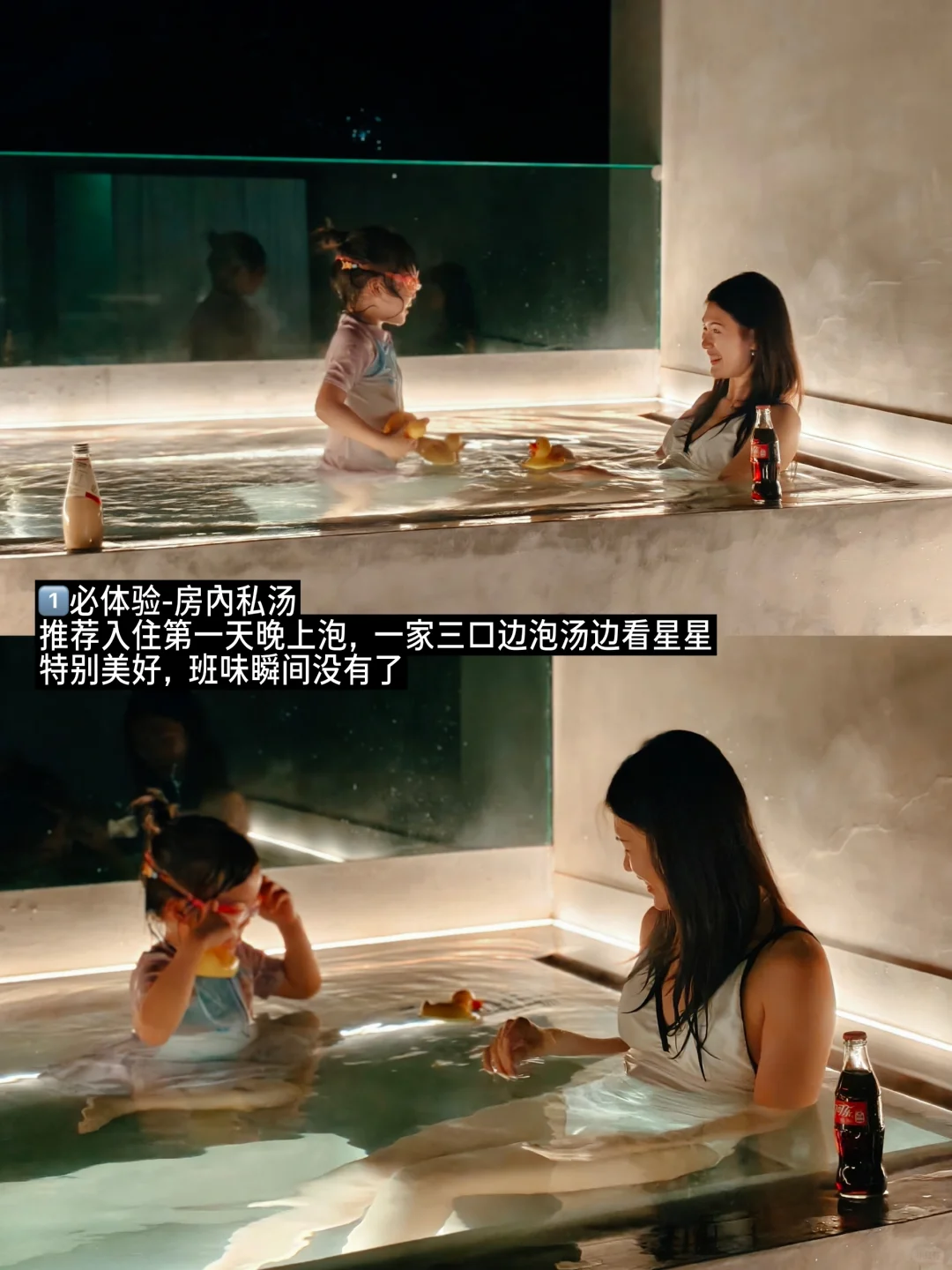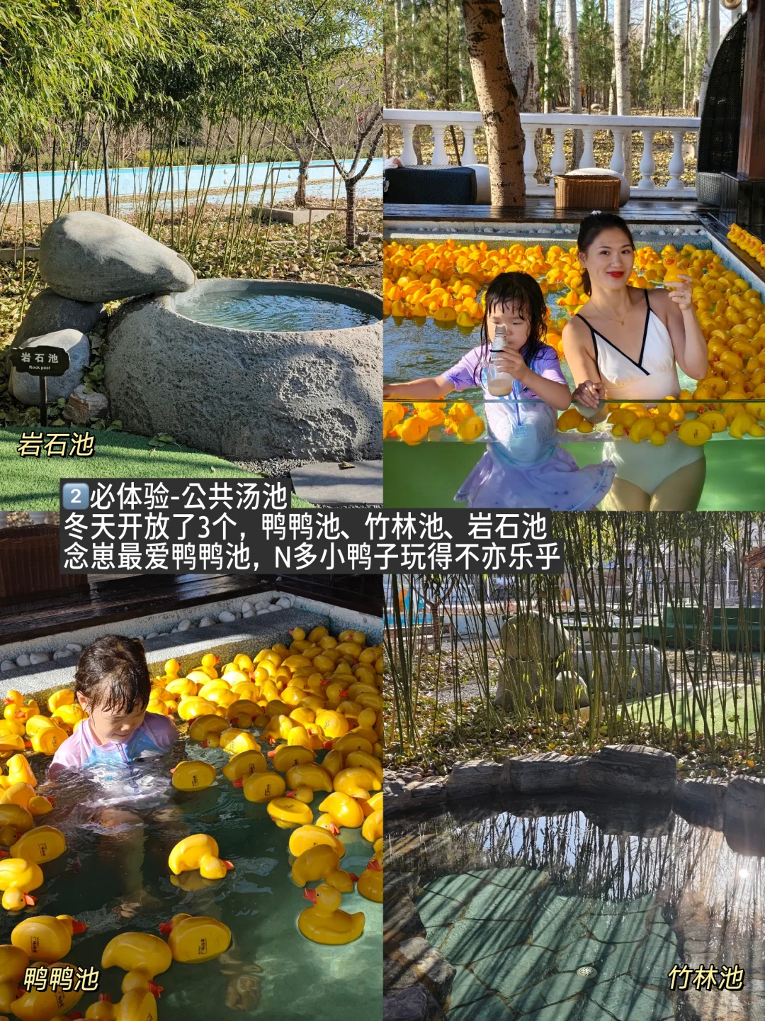 上周末带4岁念崽去了个神仙酒店,晚上泡私汤看星星,喂鸽子,免费逛动物园,免费玩旋转木马蹦床,体验拉满!一定要带娃去,非常推荐亲子游,热乎乎的攻略分享大家 - 🌈必体验🌈 1️⃣房内私汤:推荐入住第一天晚上泡,一家三口边泡汤边看星星,特别美好,班味瞬间没有了 2️⃣公共汤池:冬天开放了3个,鸭鸭池、竹林池、岩石池,念崽最爱鸭鸭池,N多小鸭子玩得不亦乐乎 3️⃣独享大草坪:10点前独享空无一人的中央草坪,鸽粮20/包,鸽子🕊都不怕人的,会飞到肩膀手上来吃粮食~体验特别棒 4️⃣免费动物园:一次性看孔雀🦚、鸵鸟、猴子🐒、天鹅🦢、鸭子🦆、羊驼、小鹿、卡皮巴拉...超多小动物,体验拉满!念崽一次性看到了5只孔雀同时开屏 5️⃣粤式早茶:在之禾的早餐品种不算多,但个个精品,虾饺凤爪肠粉都太好吃啦,早餐到11点 6️⃣旋转木马:酒店住客免费玩!不限次数!11-13点开放(念崽怒玩3次! 7️⃣蹦床:酒店住客免费玩!不限次数!11-13点开放 8️⃣酒店后山:后山很宝藏!散养的小鹿羊驼特别活泼,可以喂食~ 还有念崽很爱的吊床、秋千、沙堆区,简直玩疯了!还有很特别的跳落叶区,这个酒店真的很懂小朋友的快乐(念崽玩的舍不得回家 - 📒2天1夜 打工人周五下班的亲子行程 DAY1:19点 check in👉🏻20点房内泡汤👉🏻21点玩水结束,洗漱👉🏻22点睡觉 DAY2:8点早餐👉🏻9点草坪区👉🏻10点动物园👉🏻11点公共汤池👉🏻12点退房行李寄存 👉🏻1点酒店后山挖沙玩吊床喂羊驼👉🏻2点离开快乐老家 - 👍🏻更多可圈可点的小细节 ✅24h提供咖啡 ✅亲子自行车随便骑 ✅minibar畅饮,还有精致的欢迎水果点心 ✅入住当晚会送2杯热乎乎的枸杞梨汤 ✅有宝宝专用的沐浴套装 ✅有床围,睡觉安心 ✅免费停车 ✅房间空调会提前打开,私汤也会提前放好水 - ⭐️推荐带:带好一家三口的泳衣、小朋友拖鞋+浴巾+牙刷,户外泡汤会更方便,酒店的人字拖浴袍都是大人版的,念崽是从户外汤池全程抱回来😂 - 📍地点:北京在之禾酒店 ❤️我们周五晚上住的,没啥人,体验很赞,2天下来,大人泡走班味,小朋友充分放电,在北四环快乐度假,感觉周末都延长了~18张图放不下的快乐,下次再来