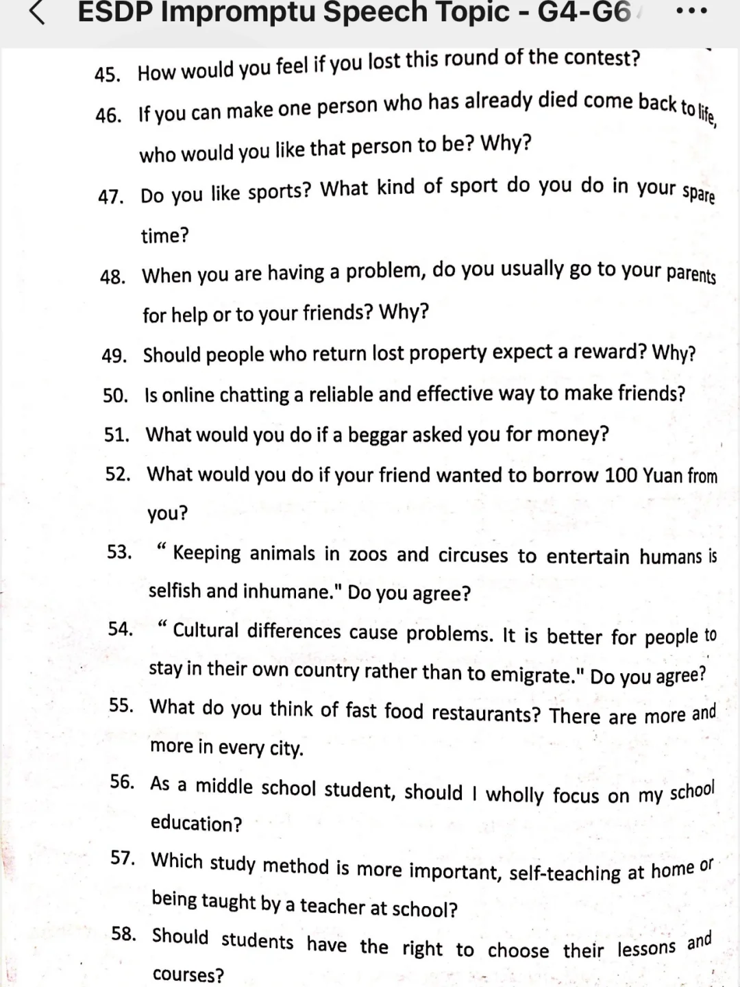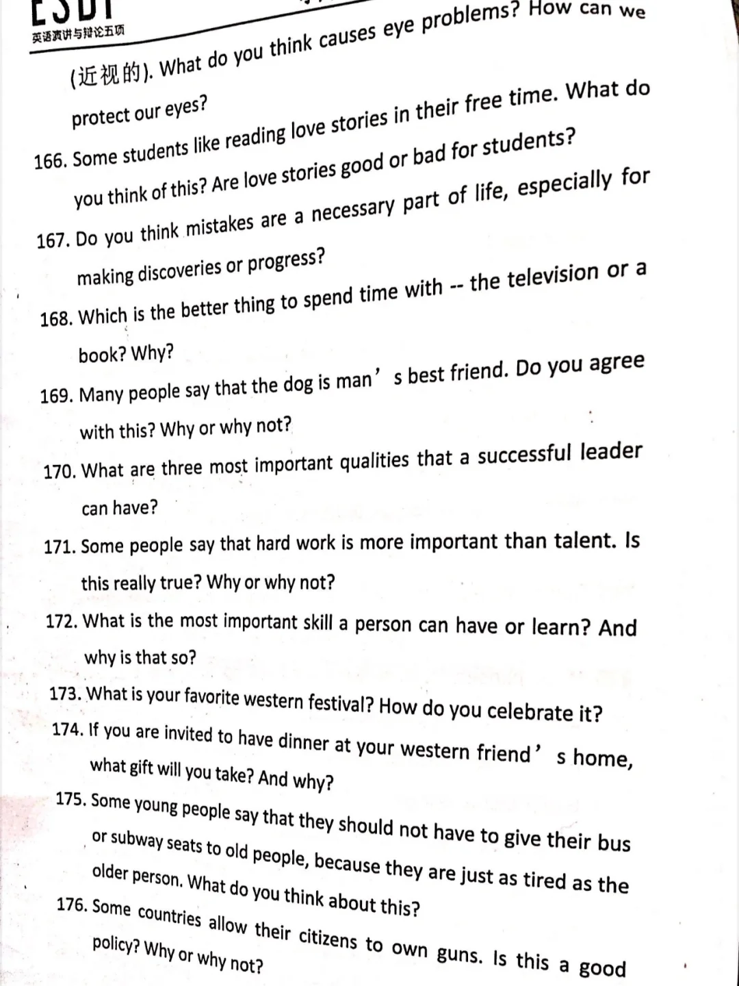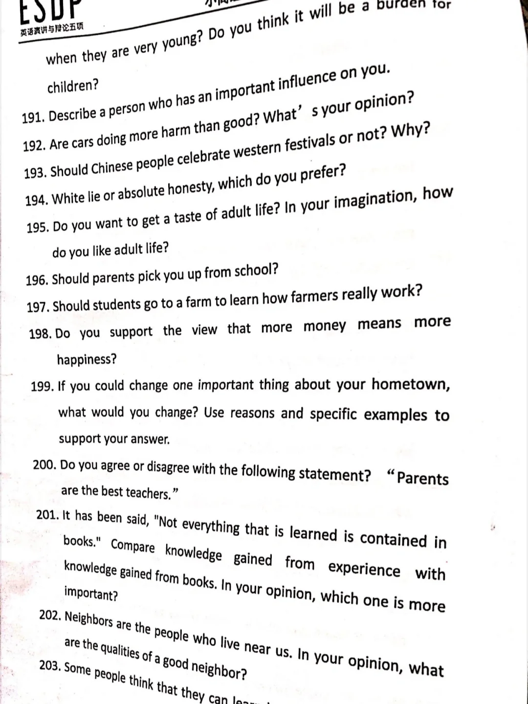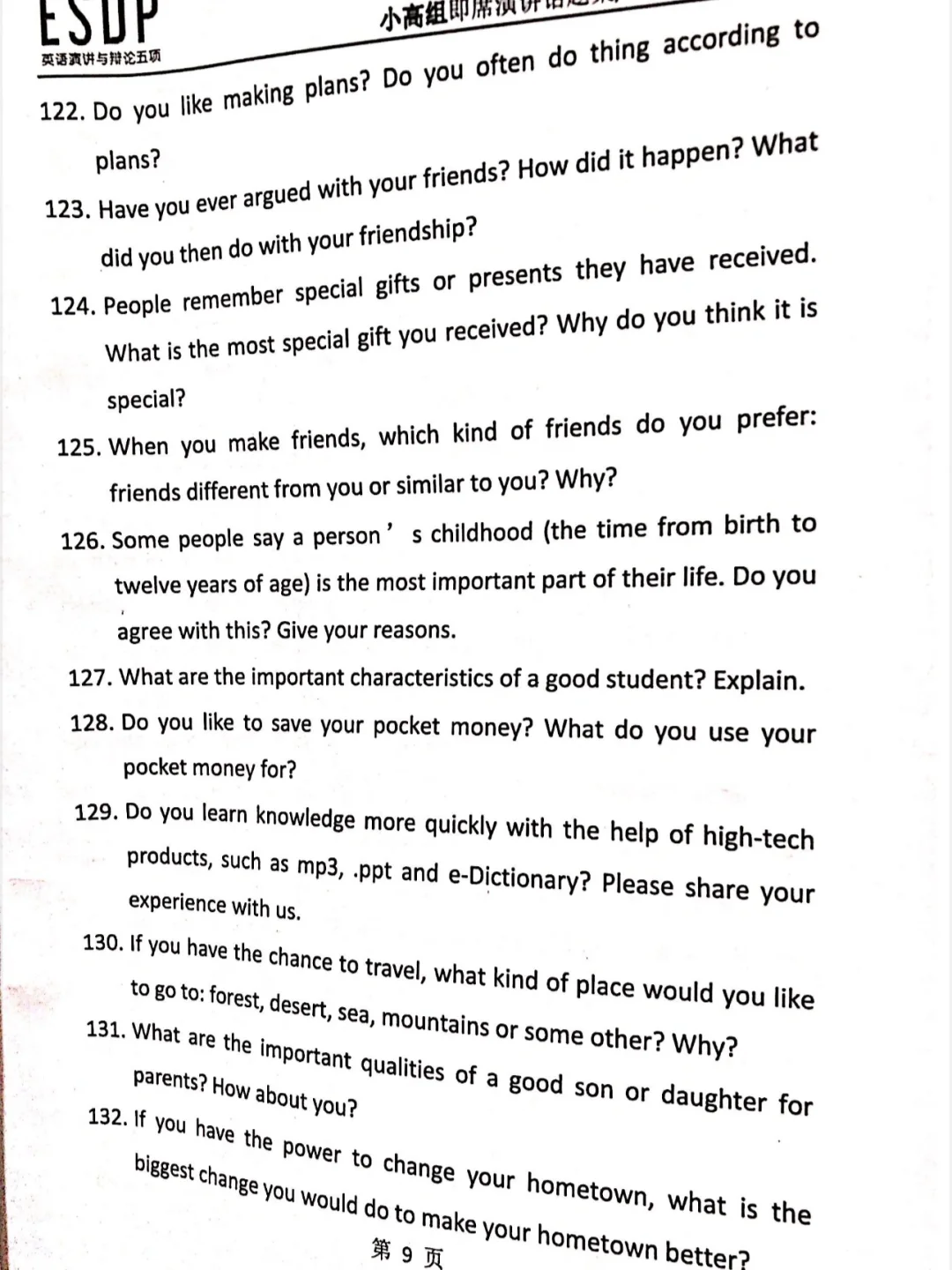 ESDP 小高组英语即兴演讲题库来啦,赶紧练吧