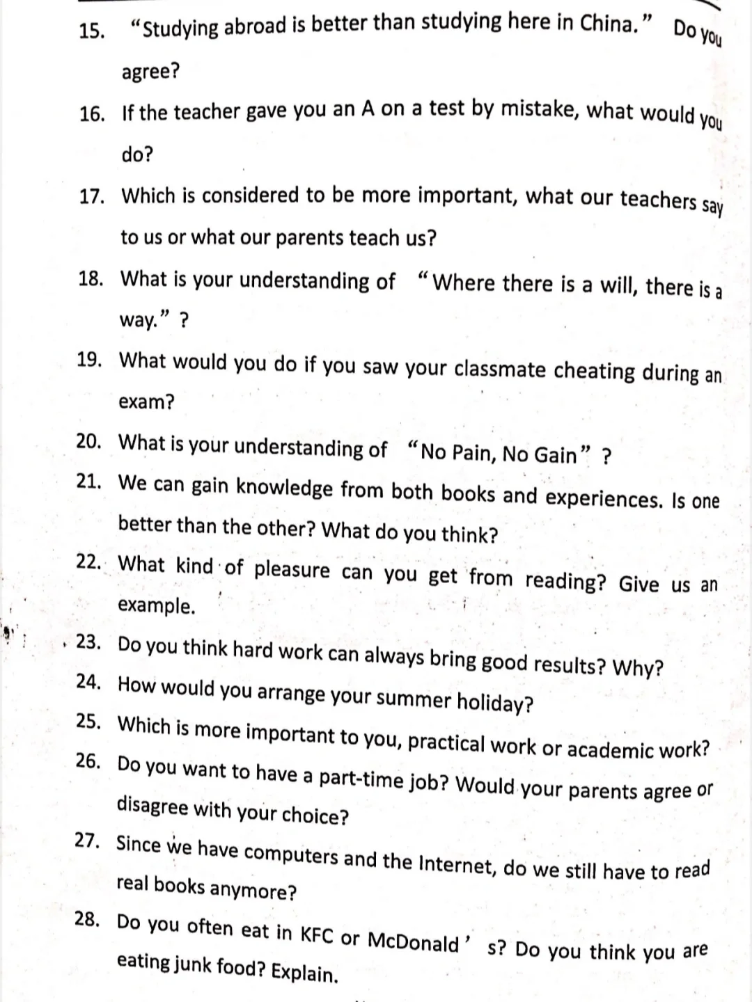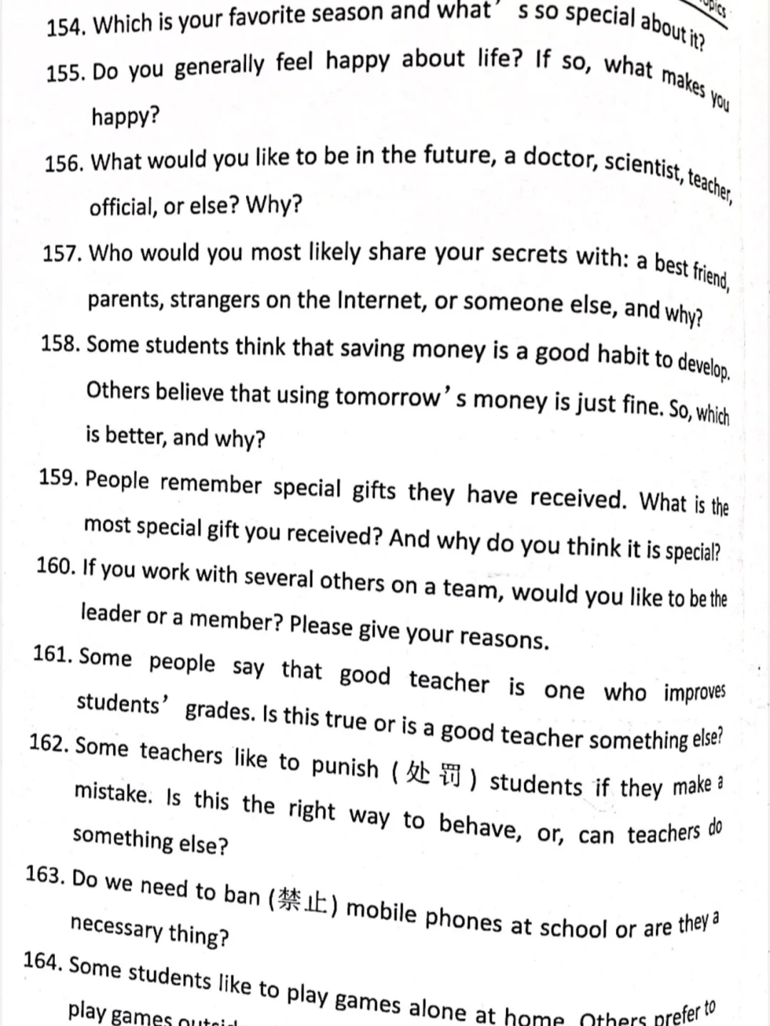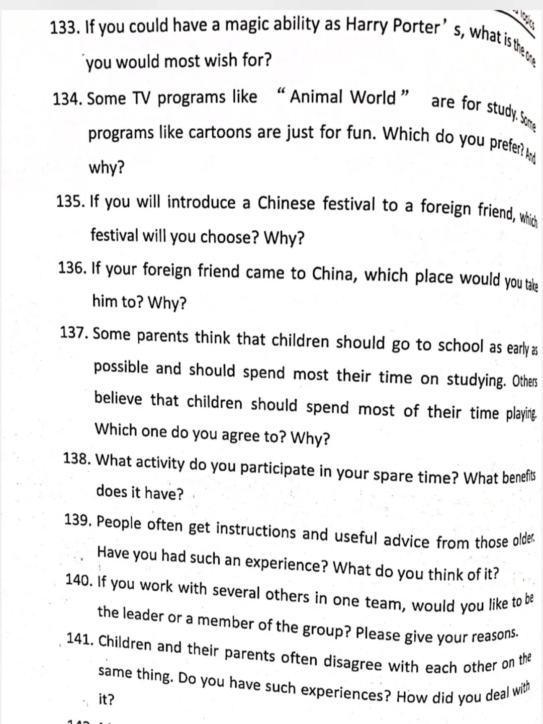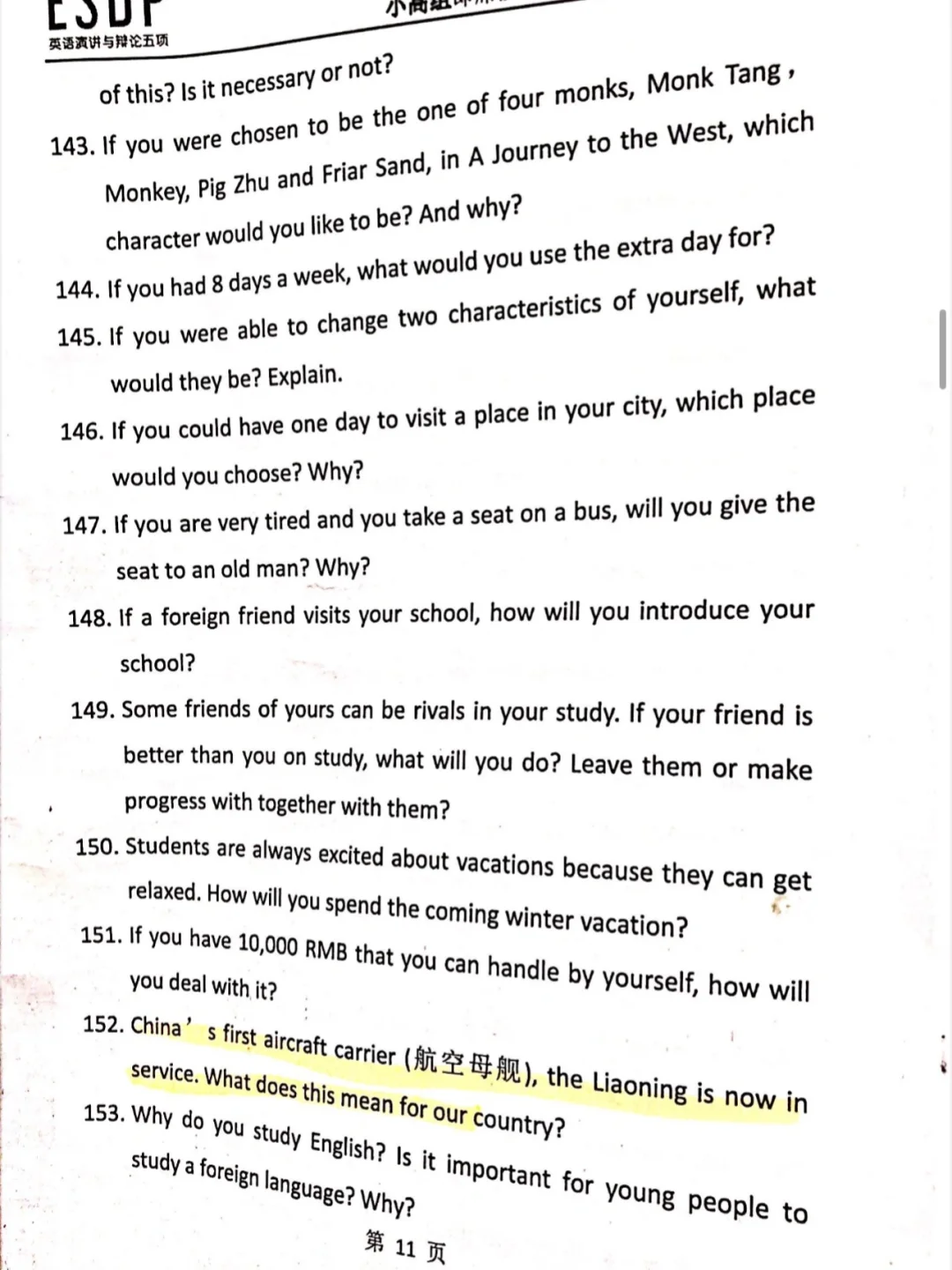 ESDP 小高组英语即兴演讲题库来啦,赶紧练吧