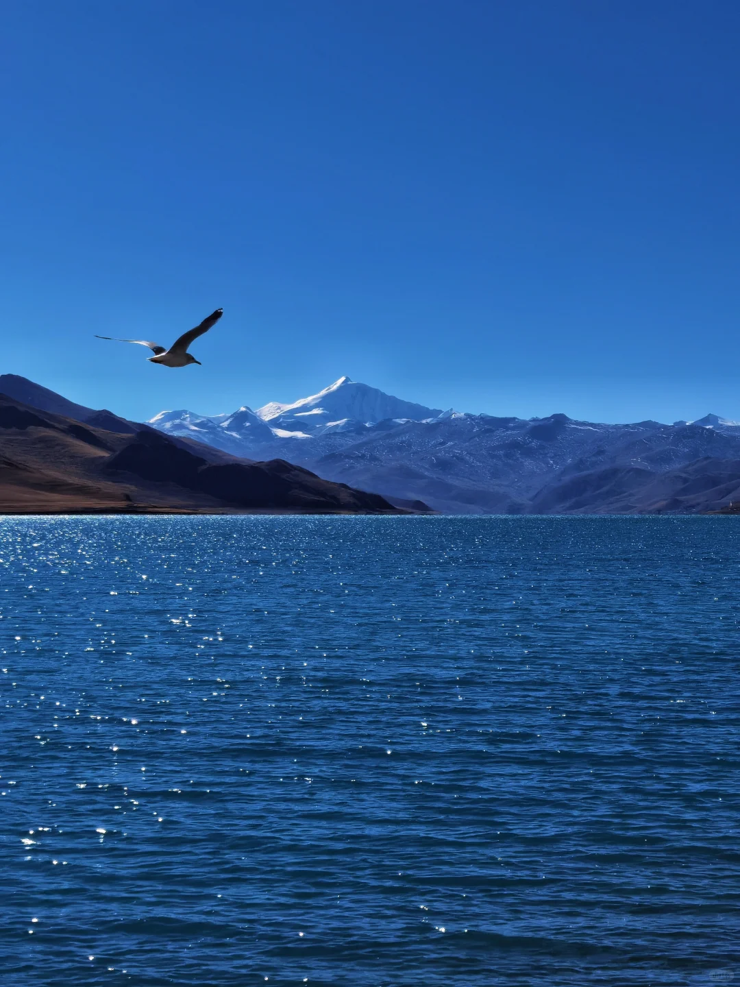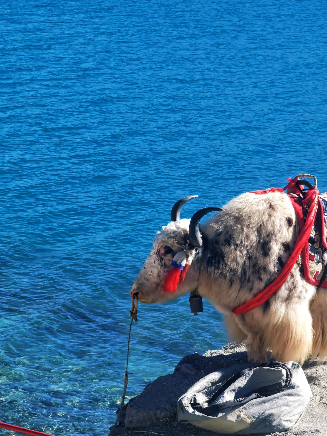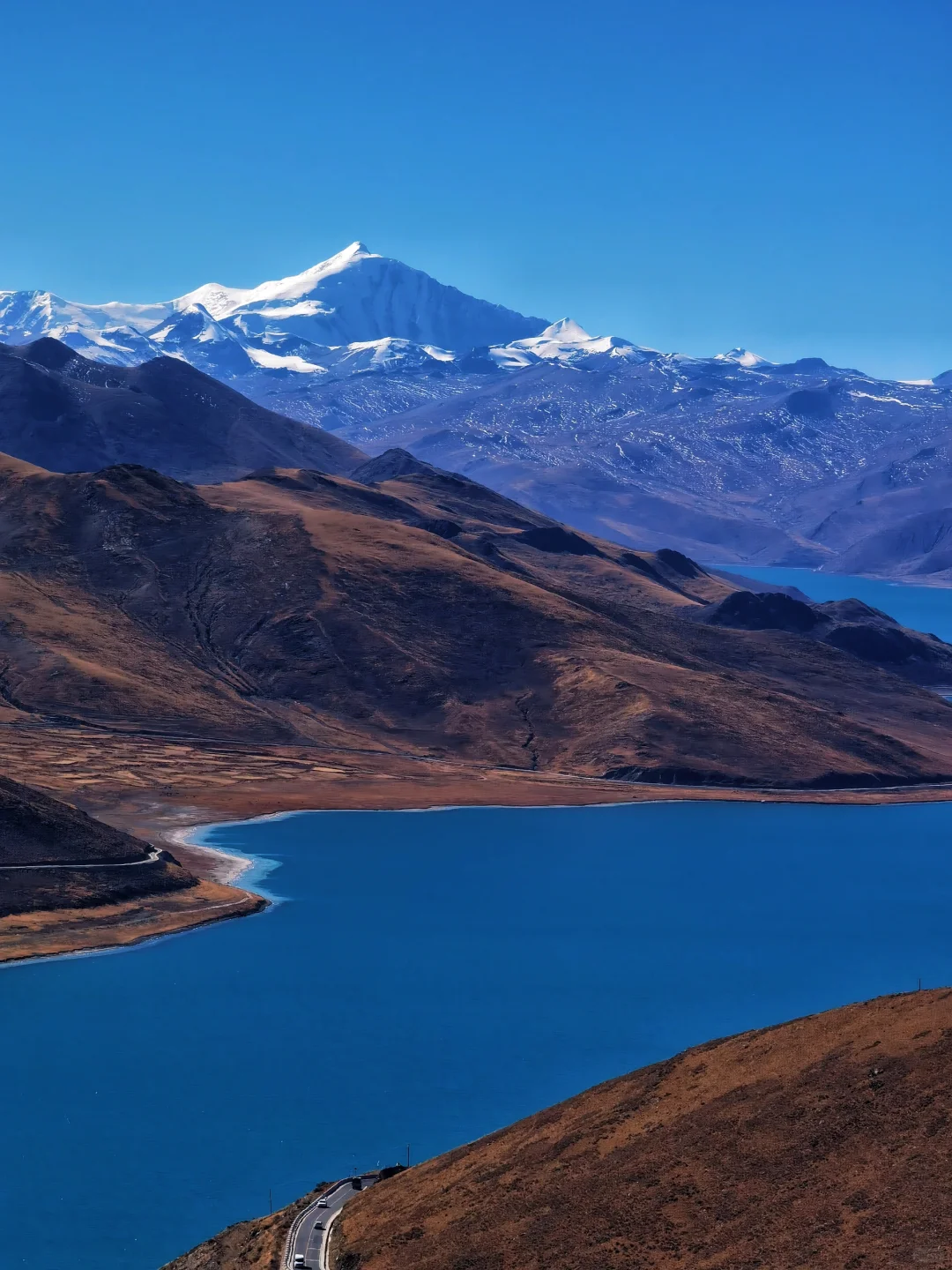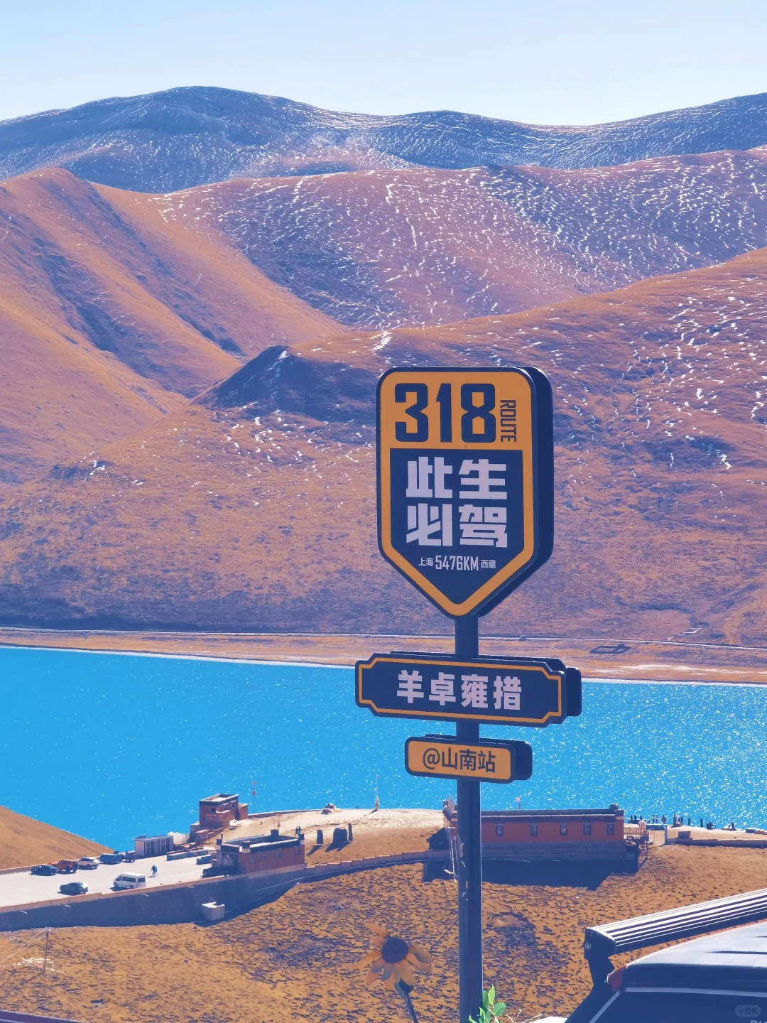 准备回北京了 给大家分享一下海拔4998米的羊卓雍措 加上我身高 四舍五入正好5000米哈哈哈 非常幸运 今天天气特别好 湖水很蓝 还能看到远处的乃钦康桑雪山 有一点遗憾这次没有带📷