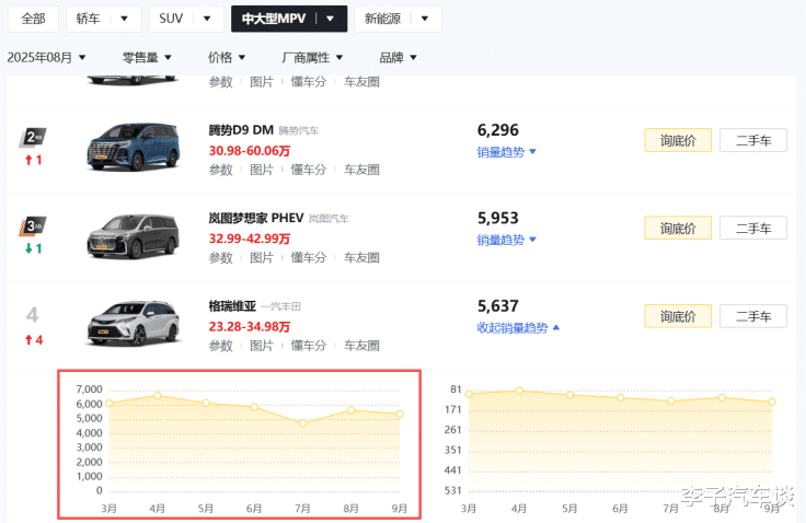 而除了丰田赛那以外,当前MPV市场上,一汽丰田格瑞维亚也是不错的选择,这款车月销量紧追丰田赛那,9月售出5,637辆,可见尽管是后来者身份,但在终端优惠力度更大的前提下,也有不少人愿意为其买单。毕竟不管怎么说,丰田赛那和格瑞维亚同出自丰田,只是设计风格和功能配置有所差异,三大件不换,才是格瑞维亚的“核心优势”。