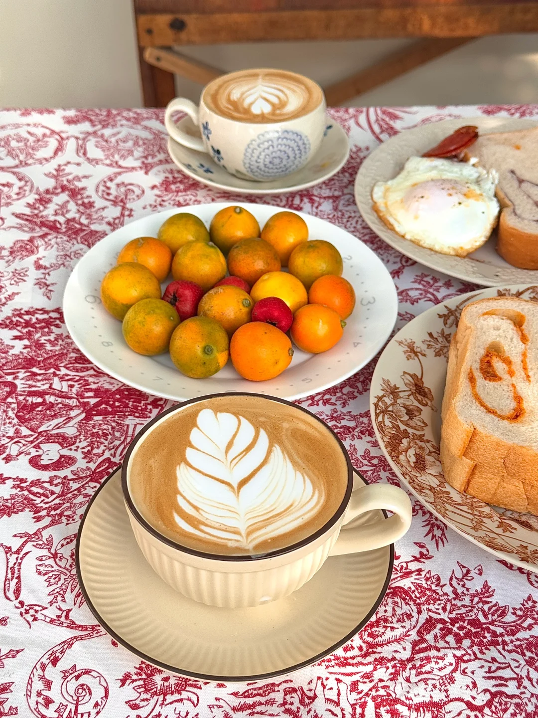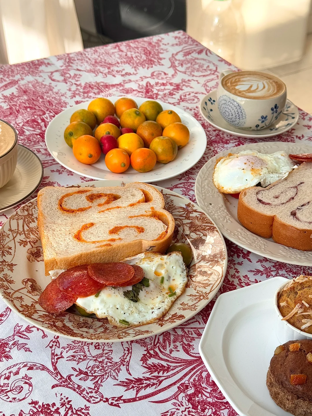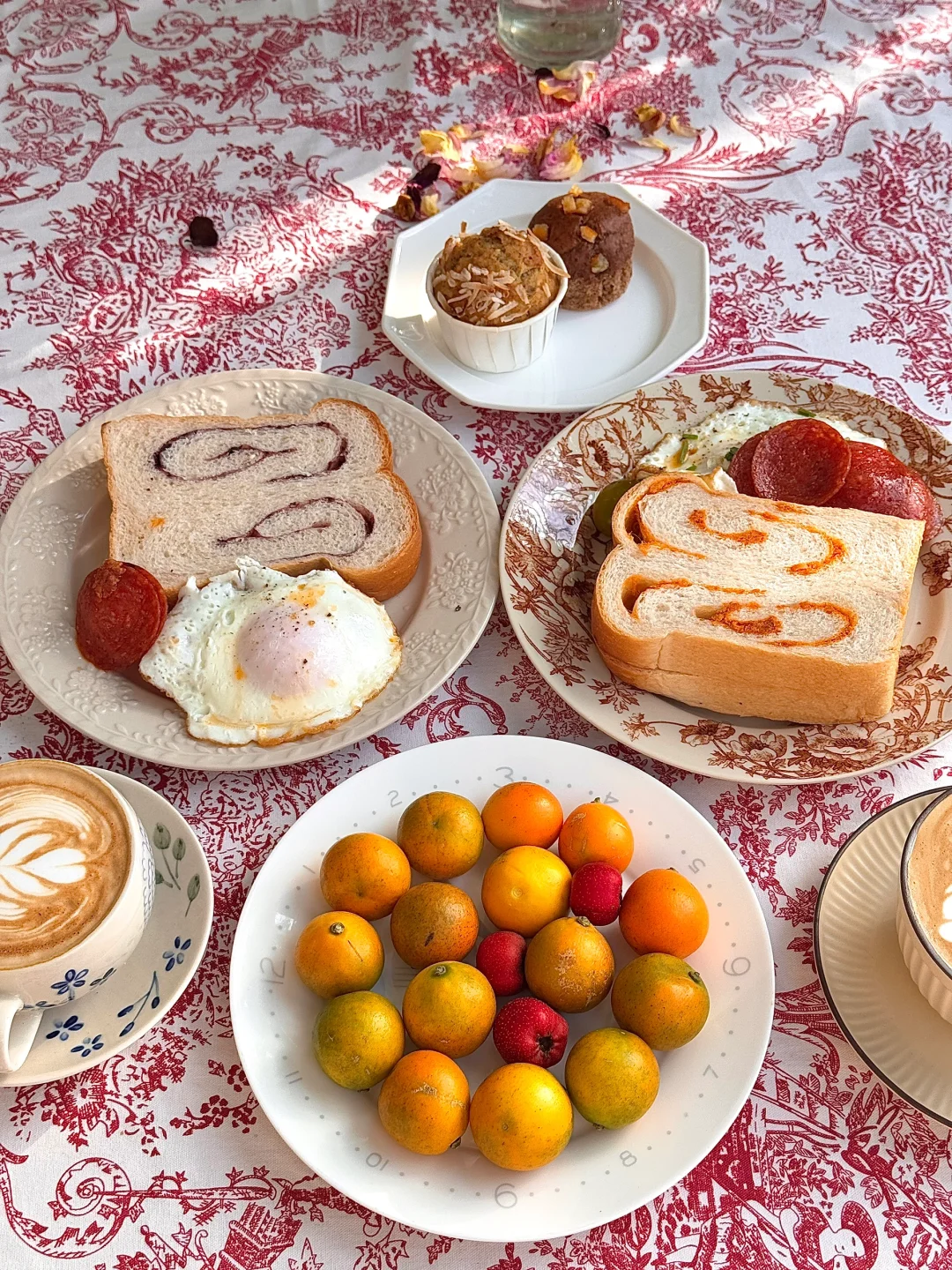 冬日暖阳实在太珍贵[害羞R] 简简单单又是一餐早餐 一日之际在于晨 咖啡和面包还有蛋糕 桌布和今天的节日很搭诶[派对R][派对R]