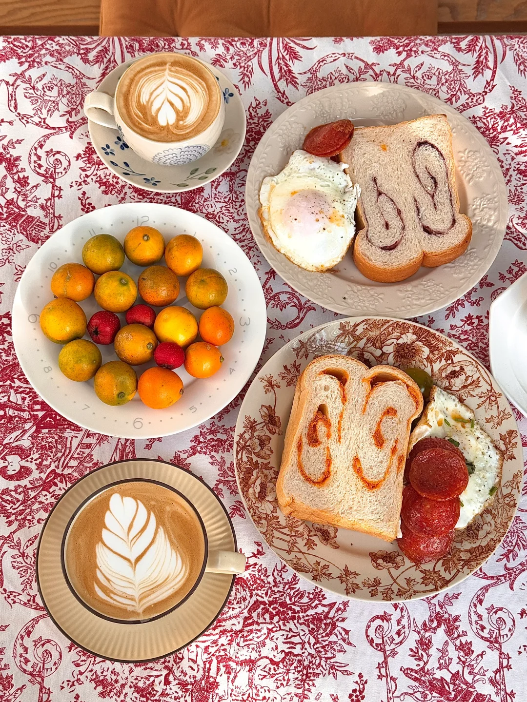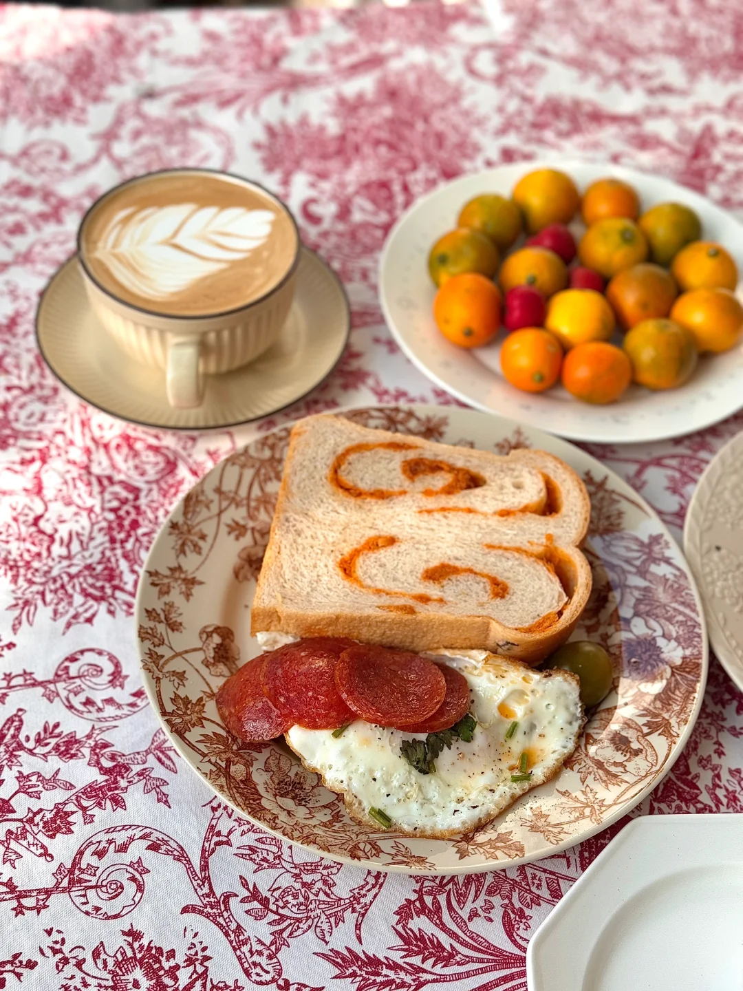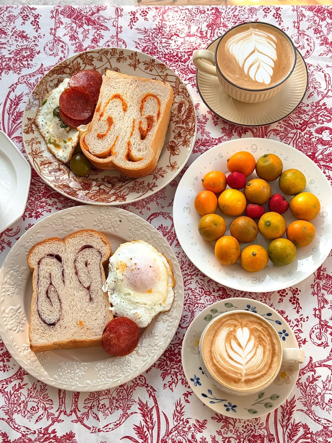 冬日暖阳实在太珍贵[害羞R] 简简单单又是一餐早餐 一日之际在于晨 咖啡和面包还有蛋糕 桌布和今天的节日很搭诶[派对R][派对R]