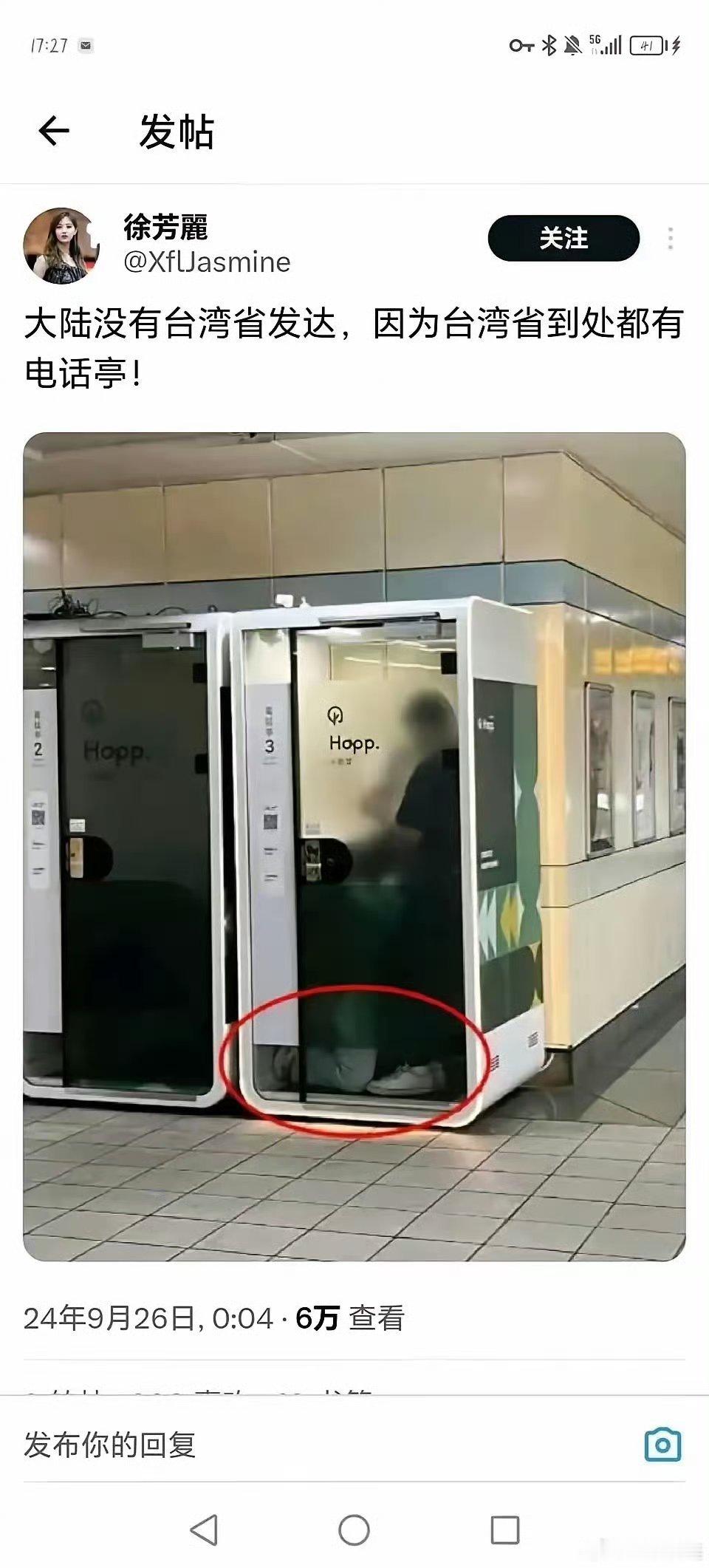 大陆没有台湾省发达,因为台湾到处都有电话亭[doge]