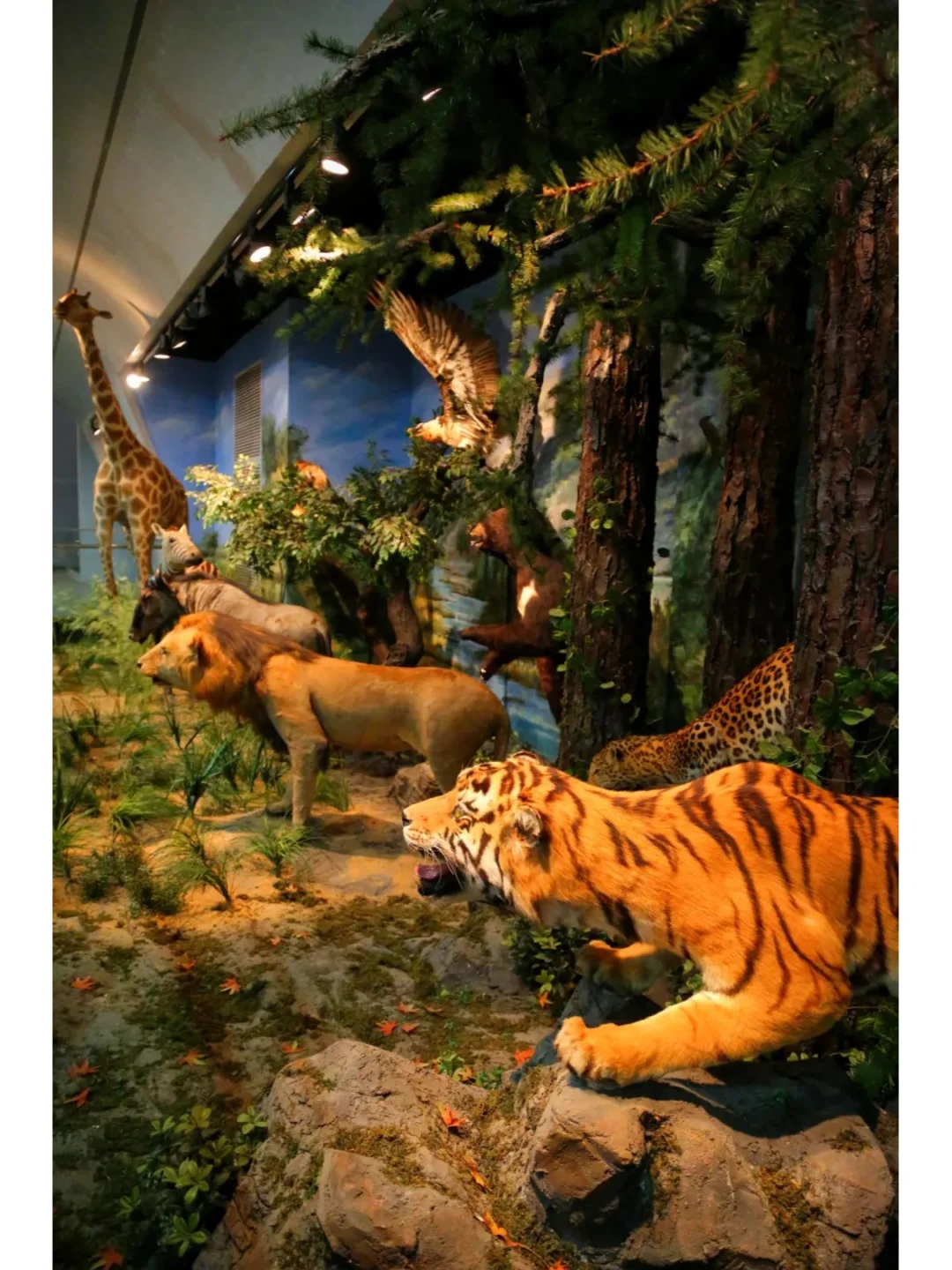 整个博物馆展厅共分为三层,展厅多达十几个,展品内容丰富,各种化石、标本、矿石琳琅满目。