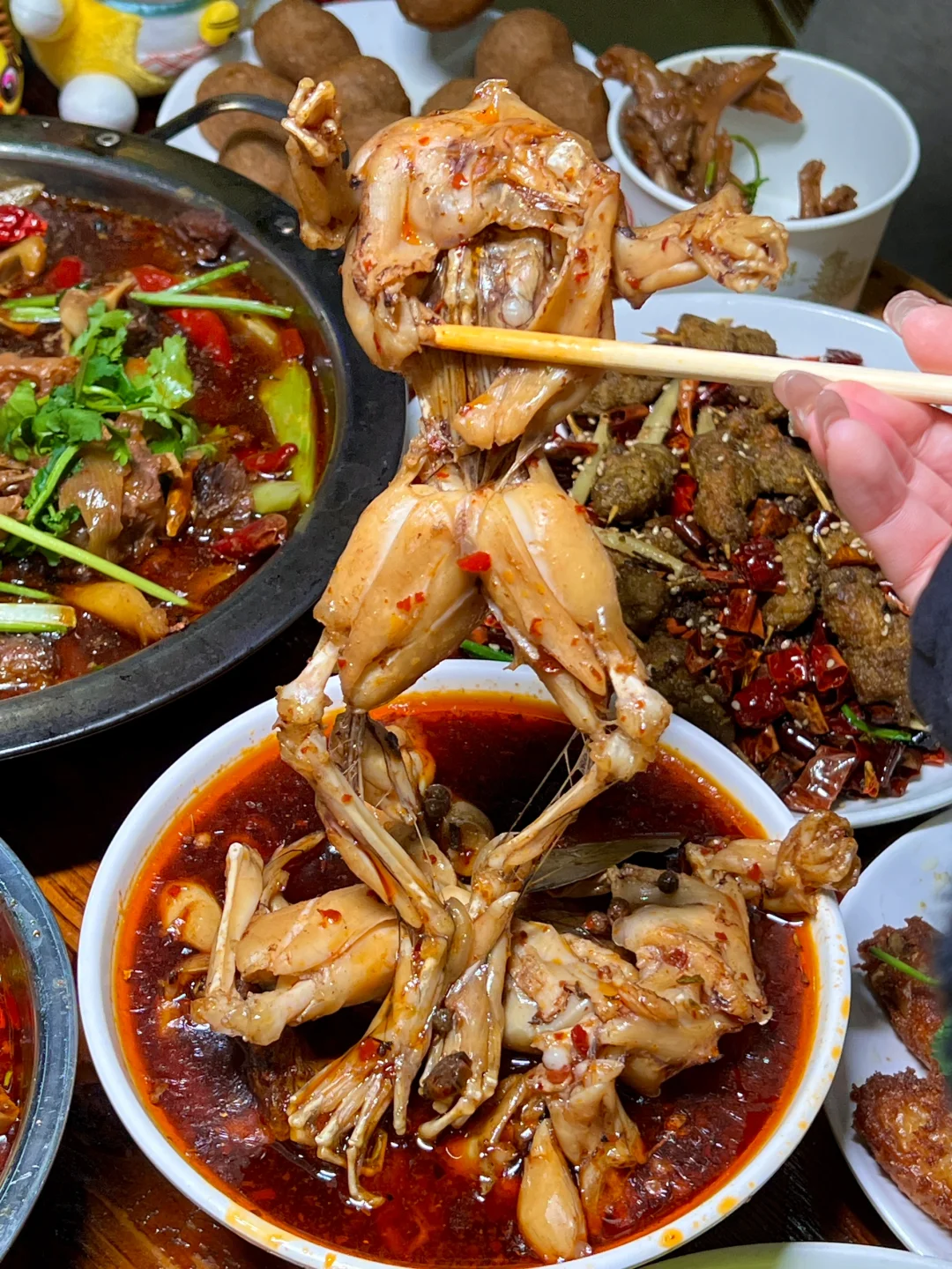 武汉真的太好吃了!30多年的老店。听本地人推荐果然没错! 舌尖上的中国来武汉采访的第一家的。 姐妹花老板不想宣传直接拒绝了🥵🥵太实力了 这家店已经和闺蜜吃了不下5678910次了 每次都能让我惊艳住! 藏在台北路,不是本地人带路都找不到.... 这次满满大桌都没踩雷! !我们点了卤水牛蛙,每只牛蛙的个头都很大!香辣过瘾!! 牙签肉也是我的心头爱。每次来必点,孜然味浓郁 牛骨头烧鸭爪,姜辣凤爪、红油凉面……每道菜都好好吃🤤朋友们都赞不绝口!