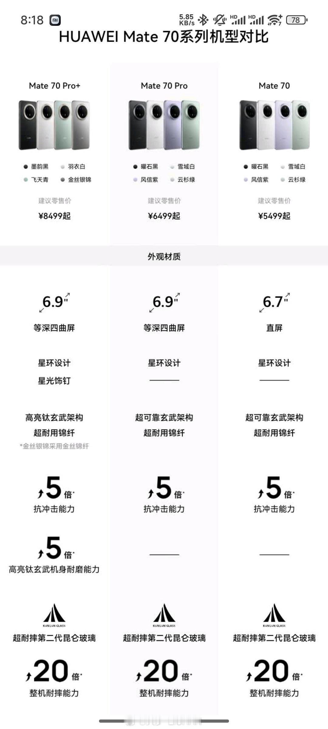 标准版起售5499元,这家公司按照苹果cmf要求来看不过分吧,更不用说pro+已经快一万价位了,那就应该做到行业顶级水准。 华为mate70pro+