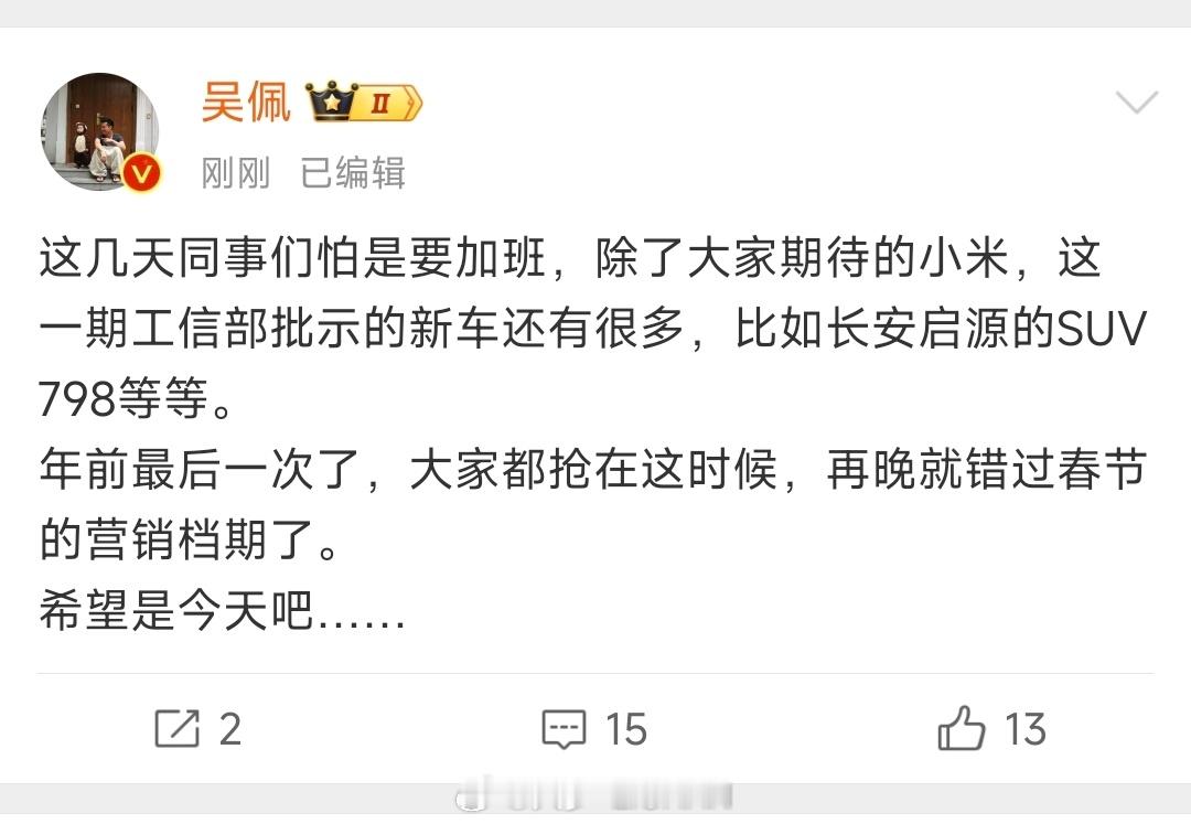 小米suv肯定不会跟turbo一起,跟小米15ultra是比较合适的,所以15u发布会的时间就比较重要了,[doge]