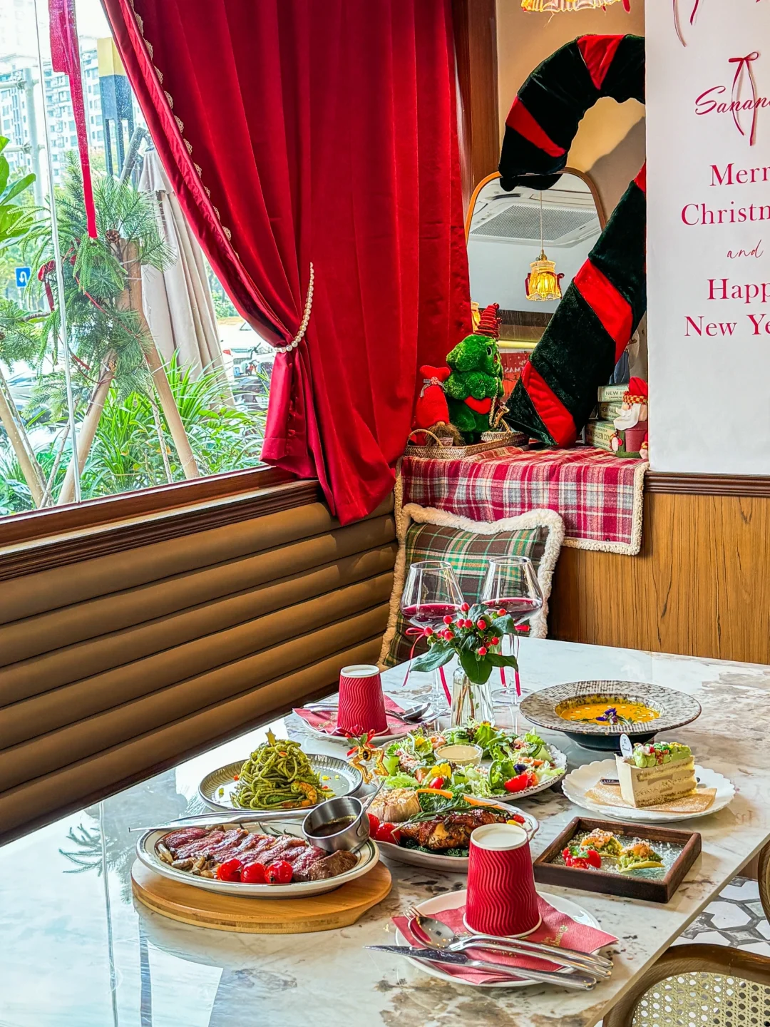 终于找到了适合过圣诞节的西餐厅!! 📍Sanana莎啦·宝藏小店 - 店里圣诞氛围拉满🎄布置真的好漂亮ing🤩 圣诞树🌲➕秋千,怎么拍📸都好好看😍 -