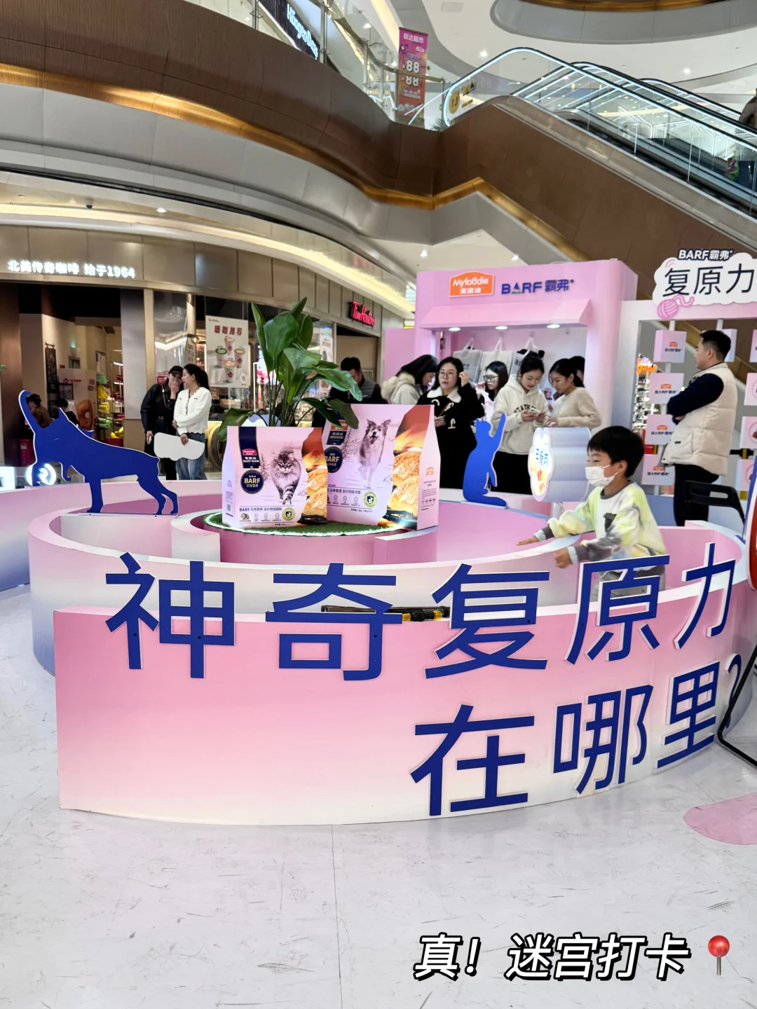 [喝奶茶R]进去后隔了老远我就发现了它家的展台,一片蓝粉色,哇,太有心了,狗狗的能见色和人类是不一样的,蓝色就是狗狗能见色之一,我爆哭,太细节了,给我直接就拿捏住啦