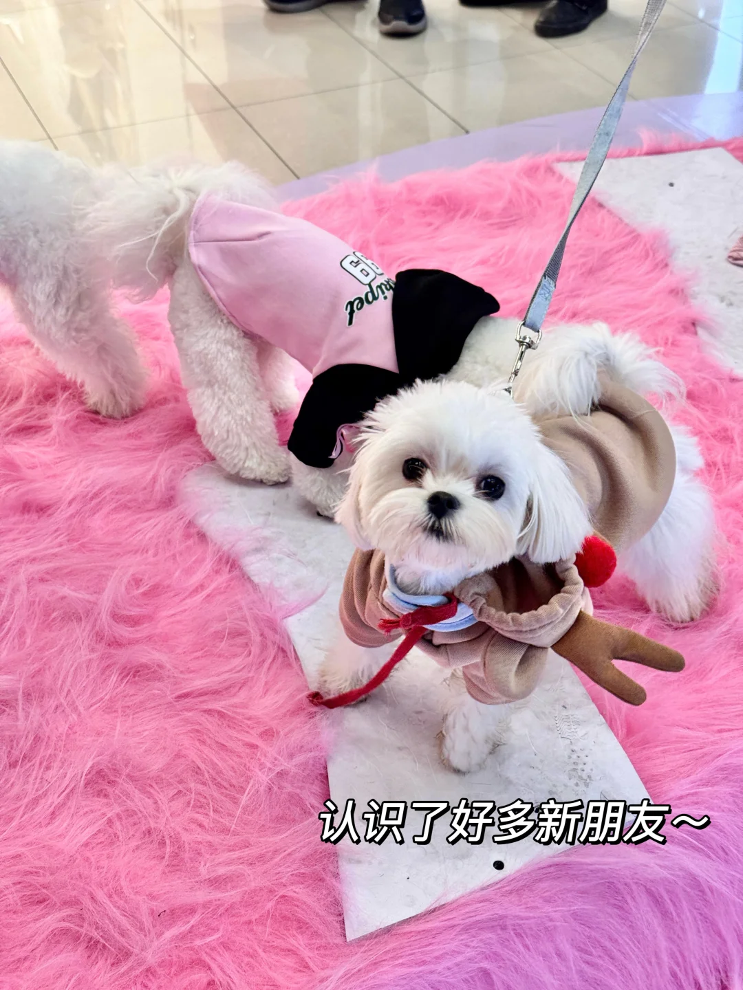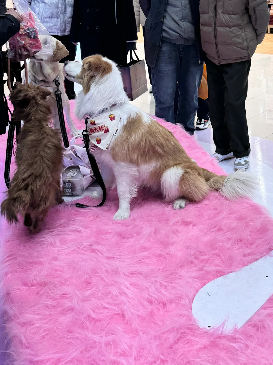 现场还有狗狗T台秀,毛孩子站在T台上显得这么小一只,完完全全就是小公举,旁边还有别的大狗狗,大家你闻我 我闻你,直接化身小狗转圈圈[派对R]