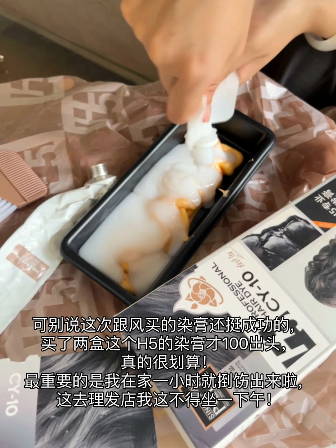 染完后有好几个同事都追着问我染的什么发色!咱也是站起来哈哈哈~可别说这次跟风买的染膏还挺成功的,染完头发质感都变好了不少,颜色也是深得我意!我买的这个H5的染膏两盒才100出头,真的很划算!最重要的是我在家一小时就捯饬出来啦,去理发店我这不得坐一下午!