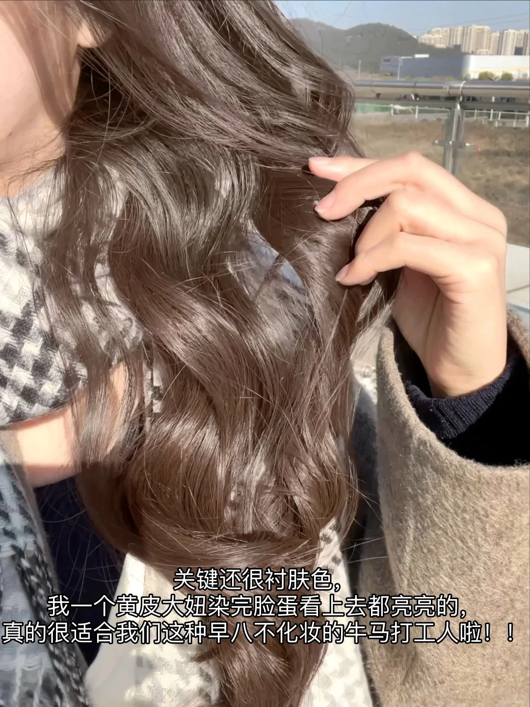 染出来的颜色整体也是偏冷调的,在光下的颜色会更明显有点偏茶棕调~室内正常光线下颜色又是那中很自然的妈生发色,真的怎么看怎么喜欢,完全不挑光线嘻嘻嘻~好久没有染过这种低调又自带小心机的发色了!关键还很衬肤色,我一个黄皮大妞染完脸蛋看上去都亮亮的,真的很适合我们这种早八不化妆的牛马打工人啦!!
