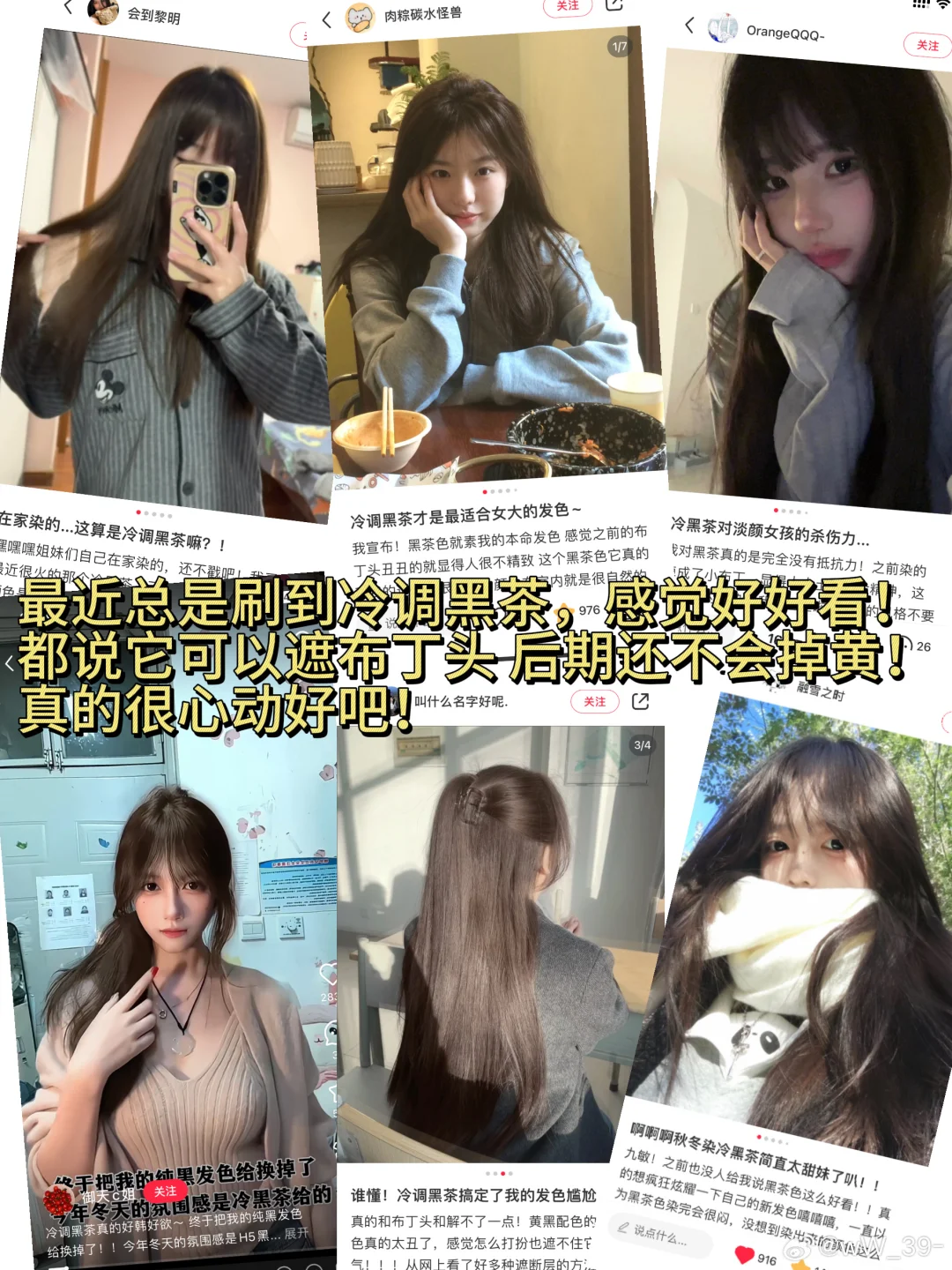 最近老是刷到冷调黑茶,都说可以遮住布丁头掉色好像很慢不会掉成丑丑的黄色,这真的每一点都让我心动哈哈哈~我是周末让朋友帮忙一起染的,操作起来还蛮简单的,染膏好像是无氨水植物萃取的,挤出来有种淡淡的香味一点也刺鼻,真的hin喜欢!!