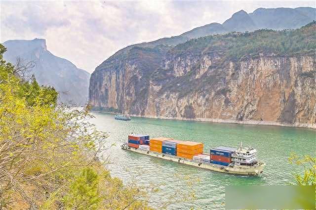 12月6日,满载集装箱的货轮航行在奉节县长江瞿塘峡段水域。