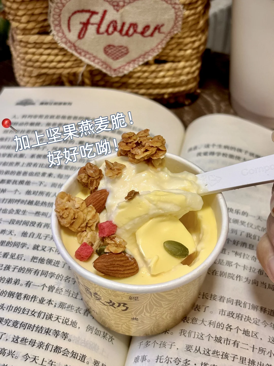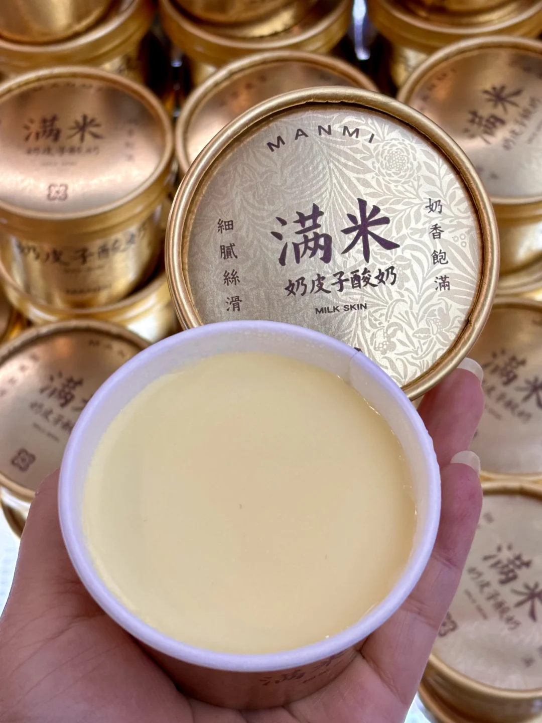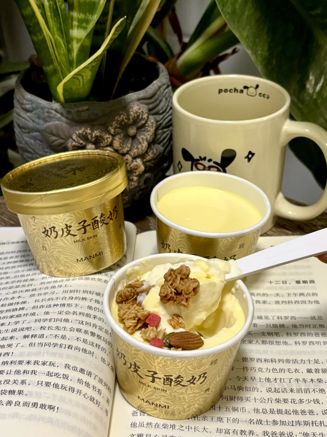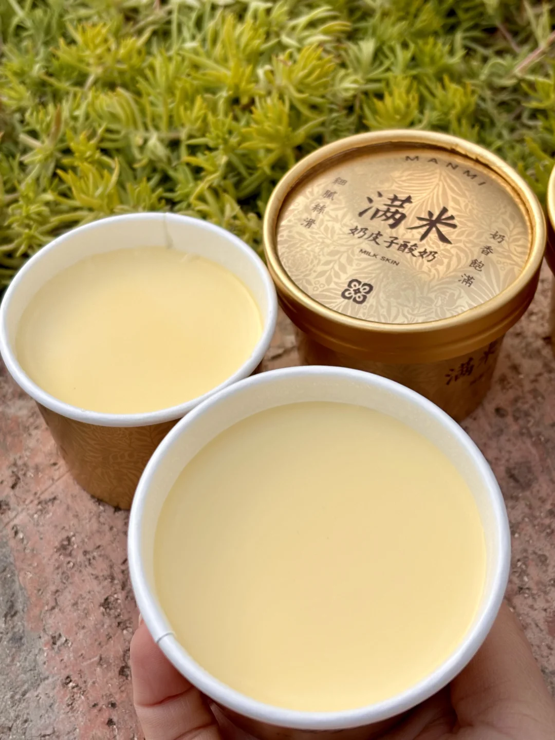 呜呜呜!爆!🔥的奶皮子酸奶我吃上啦~🎉 一打开就能看到一层乳黄色厚厚的奶皮子 底下是乳白色超级嫩的酸奶