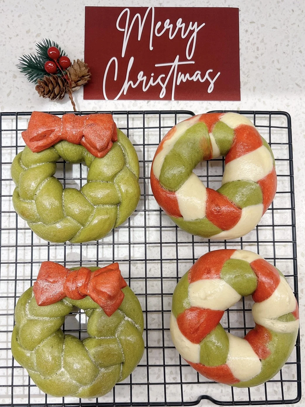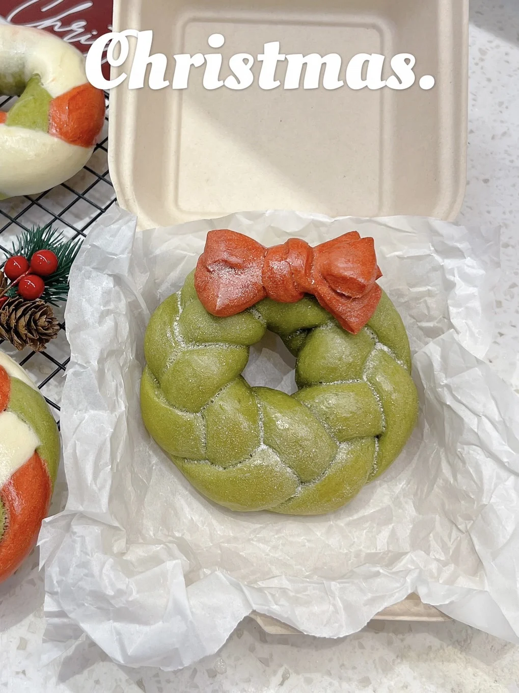 🎄圣诞花环贝果,再配杯榛果拿铁,氛围感拉满