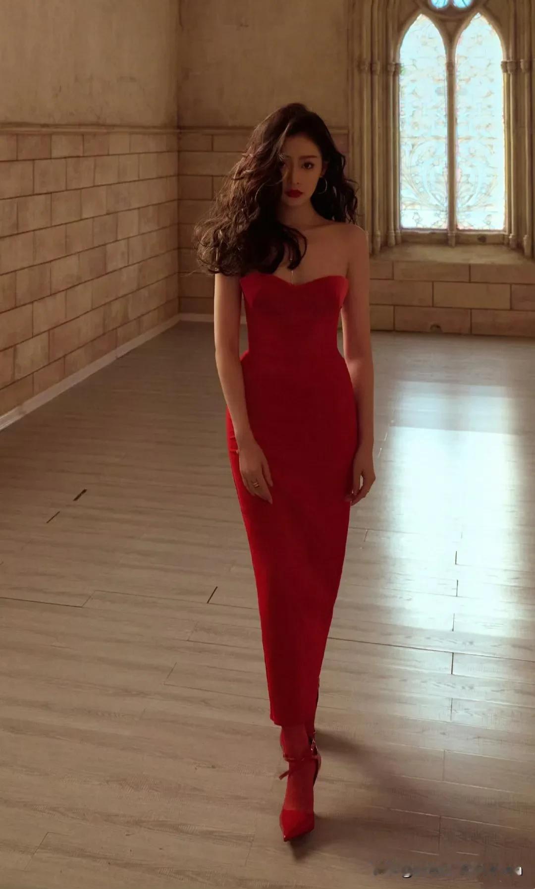 张天爱复古红裙,优雅迷人,尽显高贵气质!