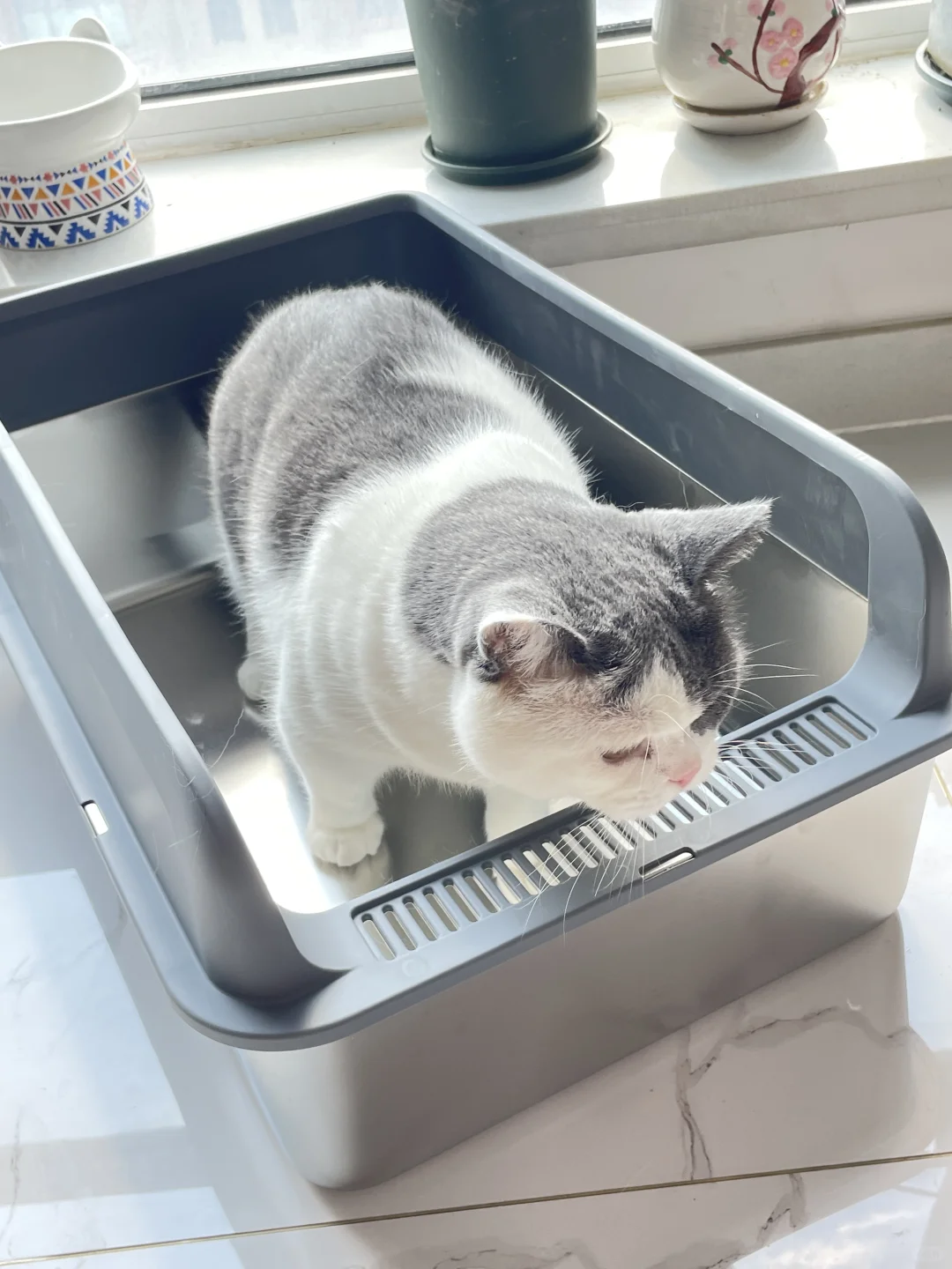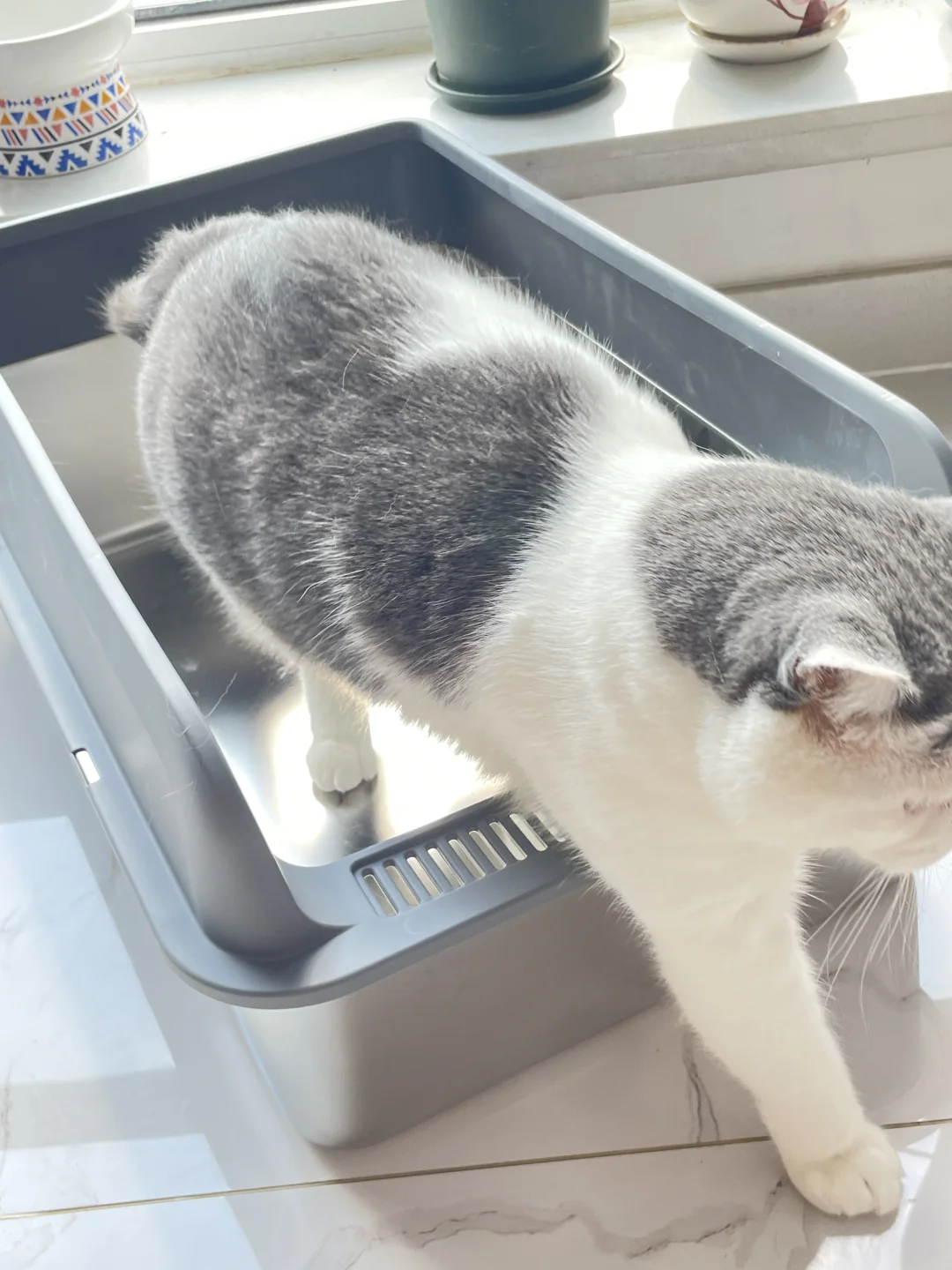 就喜欢蹲猫砂盆纸壳箱等等 已经沦为它的玩具了
