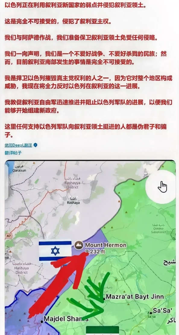 三大矛盾现象使让叙利亚局势扑朔迷离,梅德韦杰夫向东大求惑。 梅德韦杰夫来了,做为俄二号人物,东大热烈欢迎,老梅也特意瞻仰了人民英雄纪念碑。 据俄媒报道,巴沙尔已到莫斯科有几天了,具体是什么时候还不得而知,但可以肯定的是,是在反对派进入大马士革前,据说是由私人飞机关闭了应答器送到俄罗斯基地的,然后由俄安排飞机送往莫斯科。 另据媒体报道,叙利亚外长在9日还向巴沙尔阿萨德通报了与反对派的过渡事谊,此时巴沙尔早已到了莫斯科,从整个的过程来看,这更像一个政权的和平过渡,尽管反对派看似声势浩大,但媒体看到的也许并不是真实情况,实际情况也许是反对派骑着摩托车追坦克追到仓库,然后整师整师的接收了大量装备,其中包括完整的俄罗斯低空预警雷达。所以,这到底是一起武装夺权?还是一起权力和平过渡?这是矛盾现象之一。 以色列似乎感觉到了这个矛盾,出动航空兵大量摧毁叙利亚军队撤退时留下的装备,包括营房、弹药仓库、坦克基地、防空系统,并出动地面部队占领戈兰高地,前锋直指大马士革,距其郊区仅十余公里。反对派夺权,这本是以色列与邻为善的好机会,夺取戈兰高地也许还能理解,为何要兵指大马士革?这是矛盾现象之二。 矛盾之二也许可以在SNA身上找到答案。面对以色列的大兵入侵,HTS不为所动,朱拉尼称,他们的敌人不是以色列,而是巴沙尔及不愿合作的,他还提到了真主党,但是SNA却正在与土耳其合作对库尔德控制区进行攻击,这是美国的势力范围。朱拉尼为何明知美以是一家,打以即打美,打美即打以,但还是让SNA打击库尔德?难道HTS与SNA不是一家?此为矛盾现象之三。 值此中东剧变之际,老梅的到访,意味深长,他也许是来求惑的,也许是来求助的,或者兼而具之,毕竟,这里还有他唯一的一个军事基地。东大呢,尽显地主之谊。