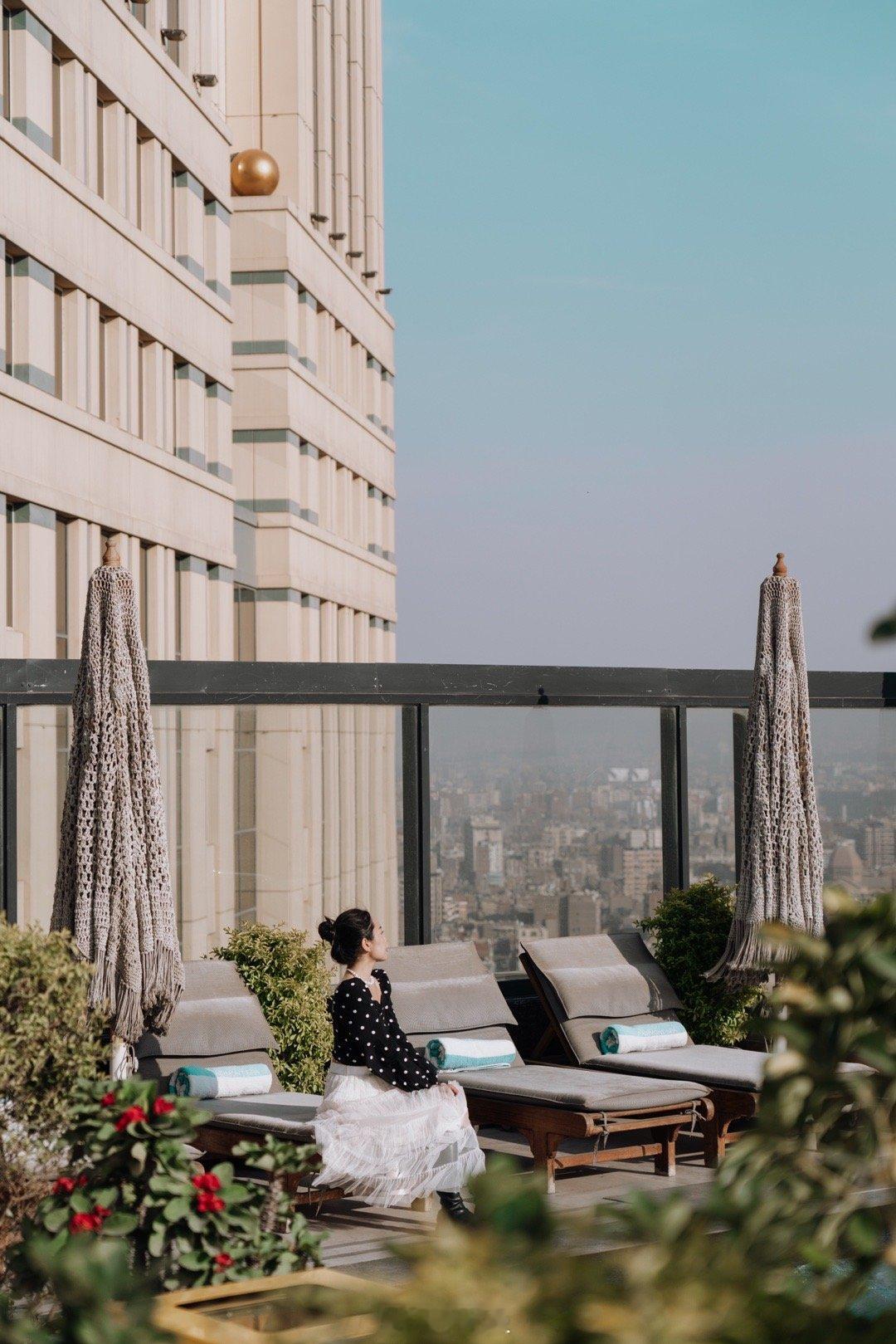 酒店的顶楼是非常漂亮的一个天台,有露天泳池和躺椅,还有一个池畔酒吧,天台也可以俯瞰尼罗河风景,视野绝佳!