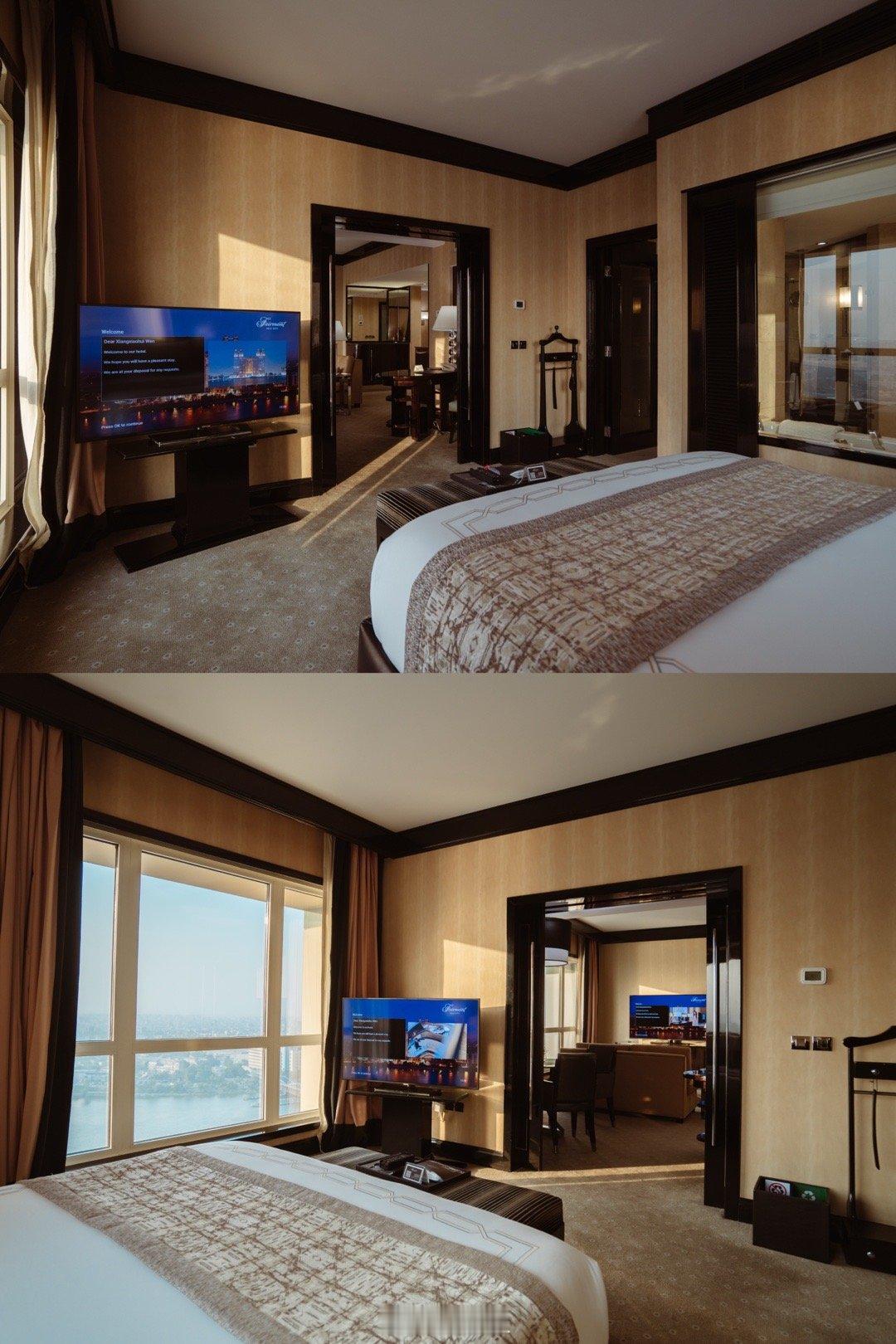 我们住的是尼罗河景行政套房,房间的空间非常大,装饰上也融入了一些埃及风情元素,床品柔软舒适,客厅和卧室都有巨大的落地窗,尼罗河景一览无余!日落的时候超级美!!