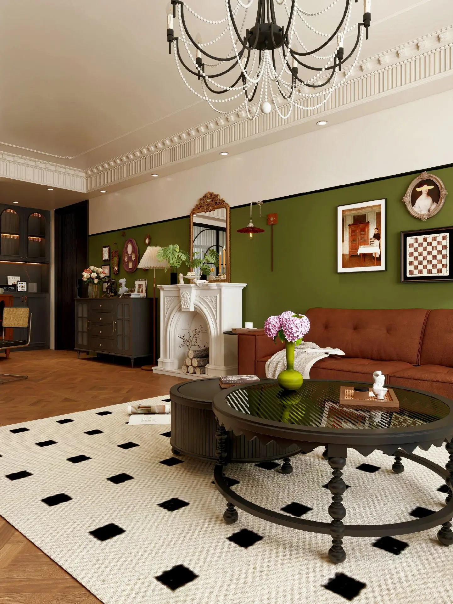 浪漫的法式复古风装修,复古绿的温暖,花砖的精致,胡桃木的自然,营造出温馨而优雅的氛围。 每一处细节都充满着氛围感,仿佛置身于复古老电影场景里