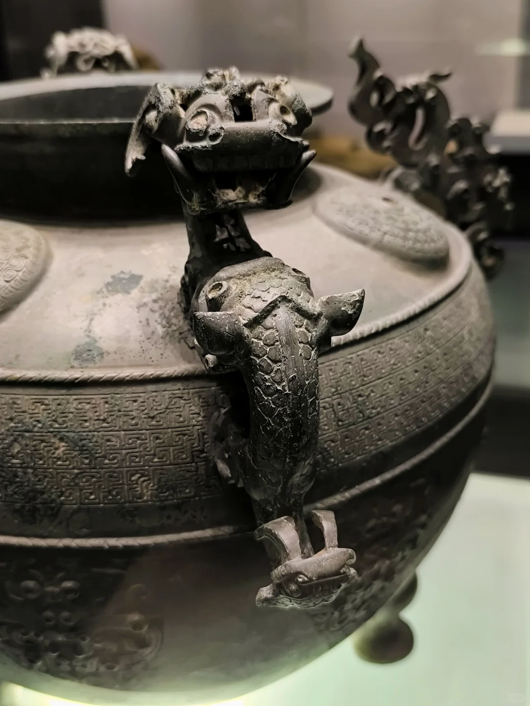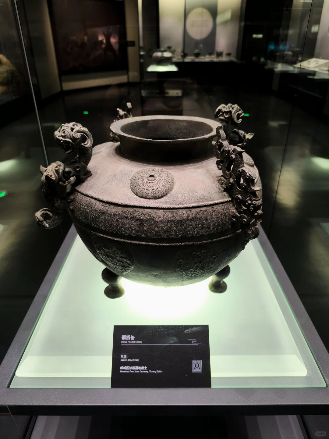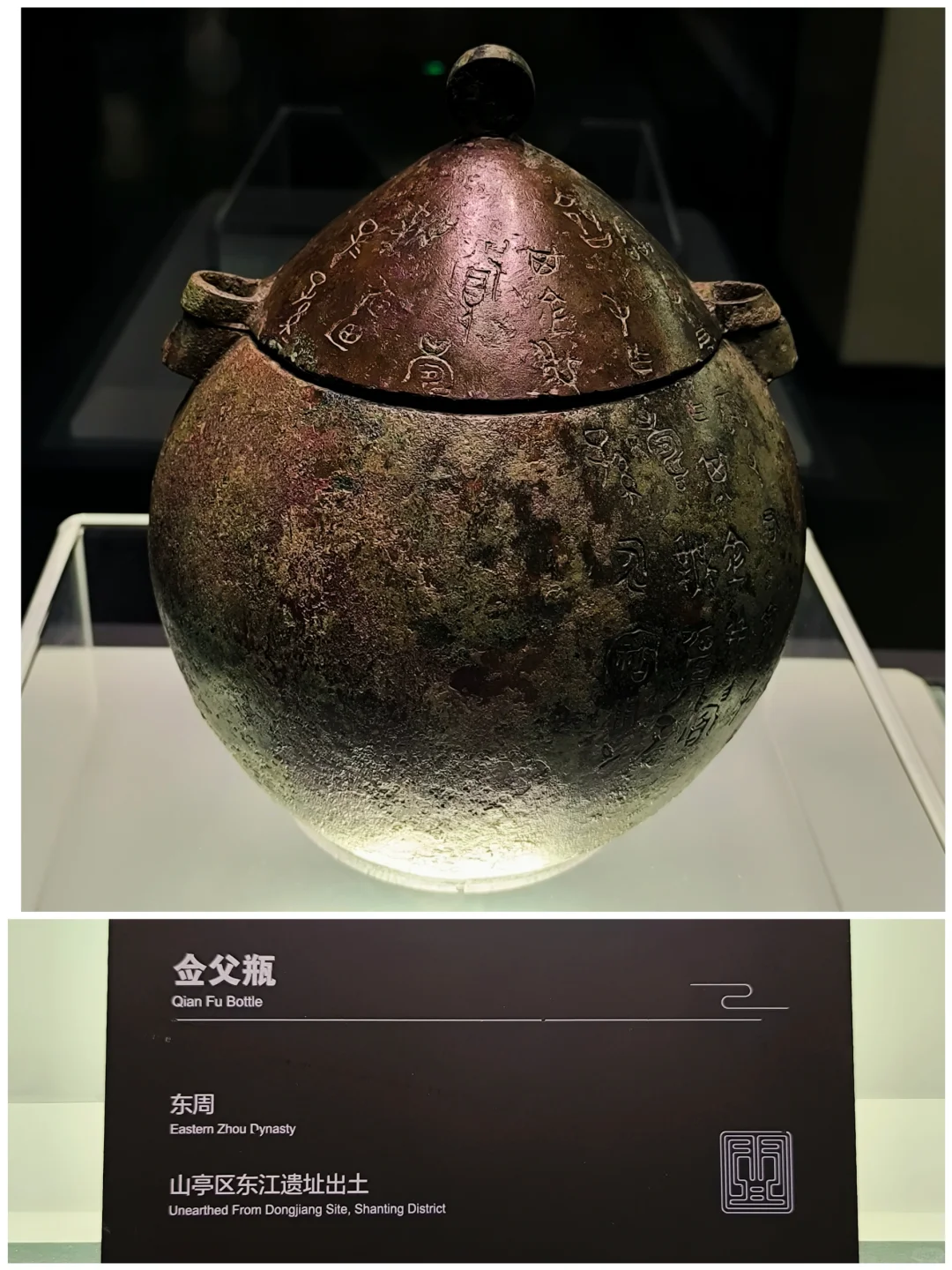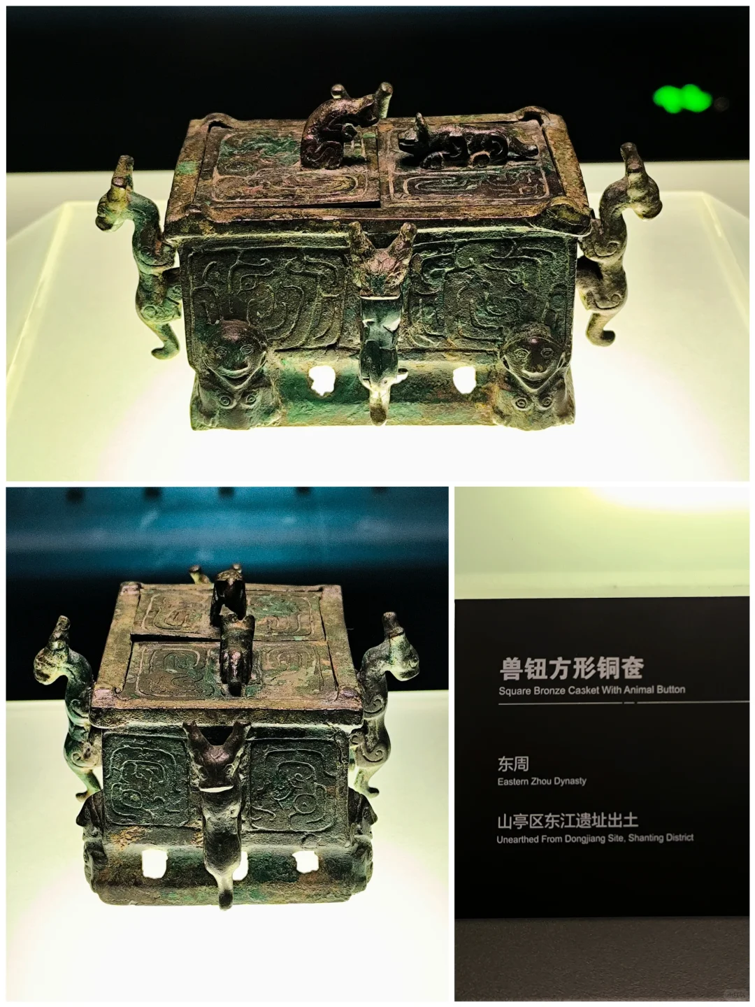 枣博镇馆之宝及顶级文物有四: ①东周·小邾国·佥父瓶 ②东周·小邾国·兽钮方形铜奁 ③东周·滥国·伏鸟罍形器 ④东周·滥国·铜浴缶(一对)