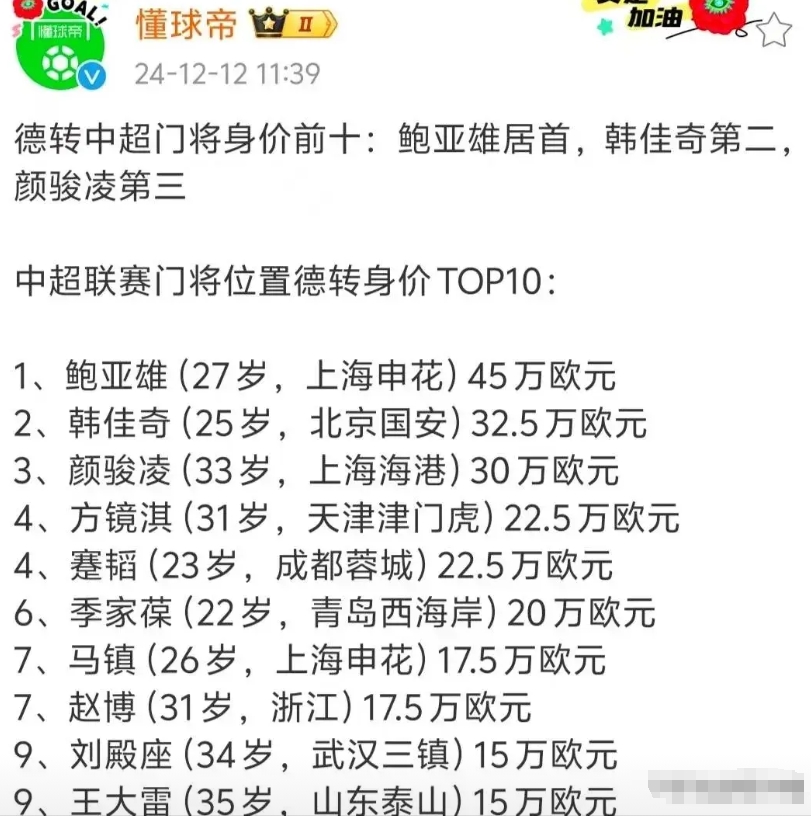 七子 24 2025-01-01 14:06 榜单上的人面对日本,谁敢保证比王大雷少?联赛横向比较才说的过去 两猫一鼠 回复 01-13 01:50 这个必须操心,拿分就靠他了。 竞技焦点堂 回复 两猫一鼠 01-14 20:12 你操碎了心