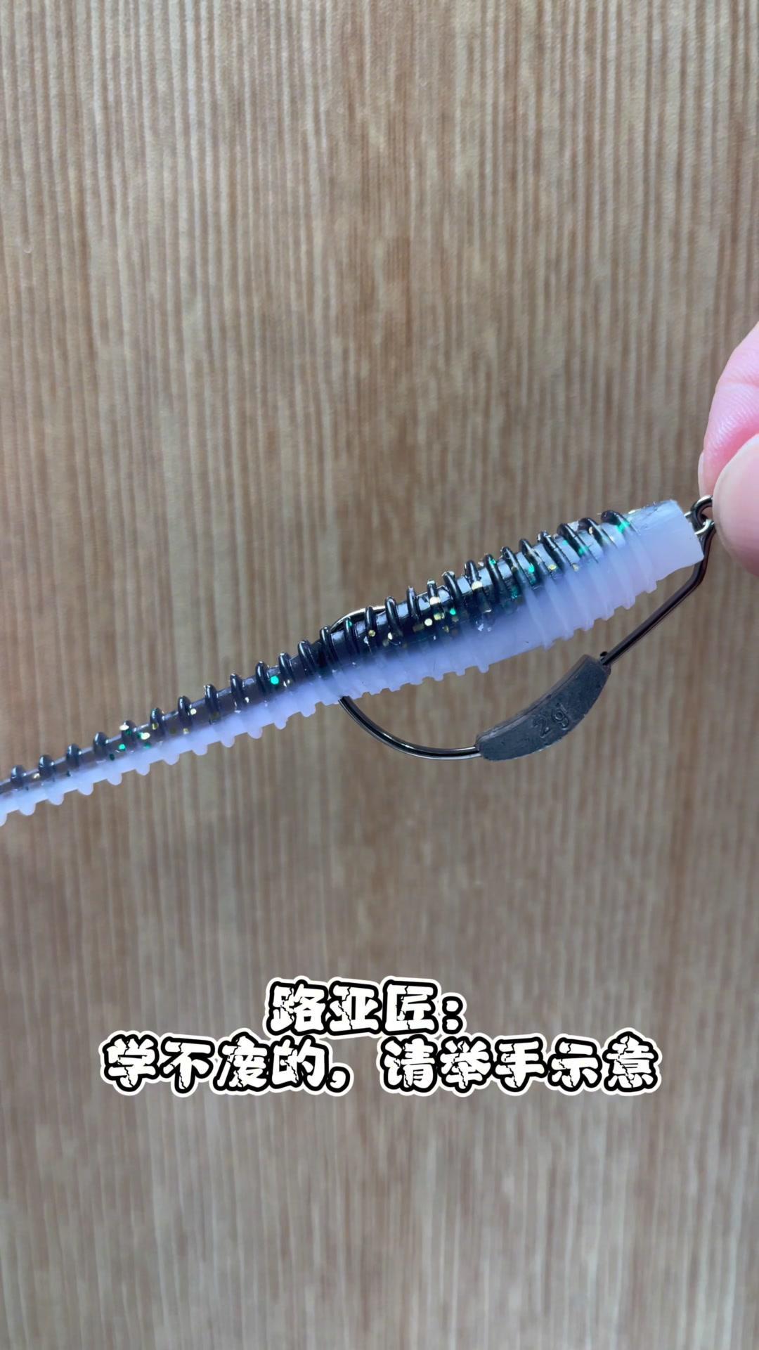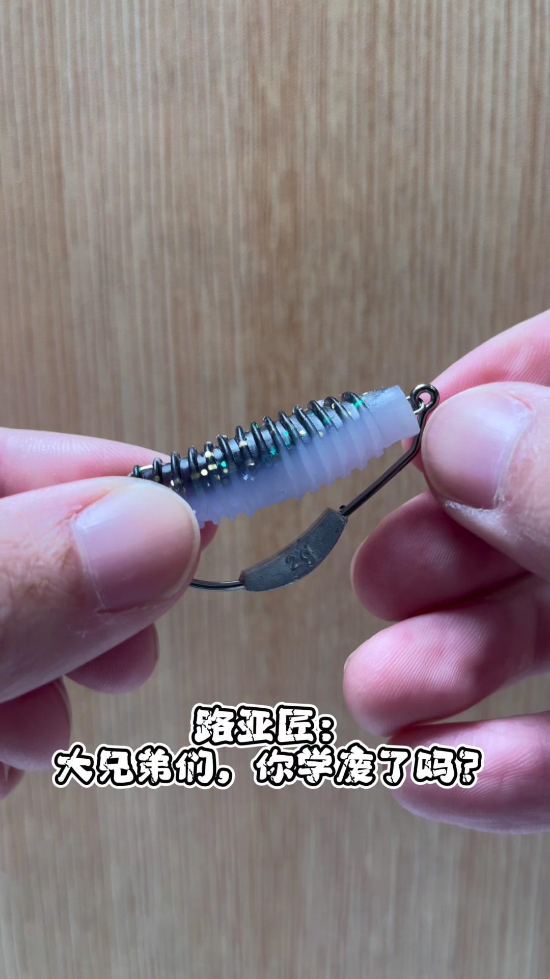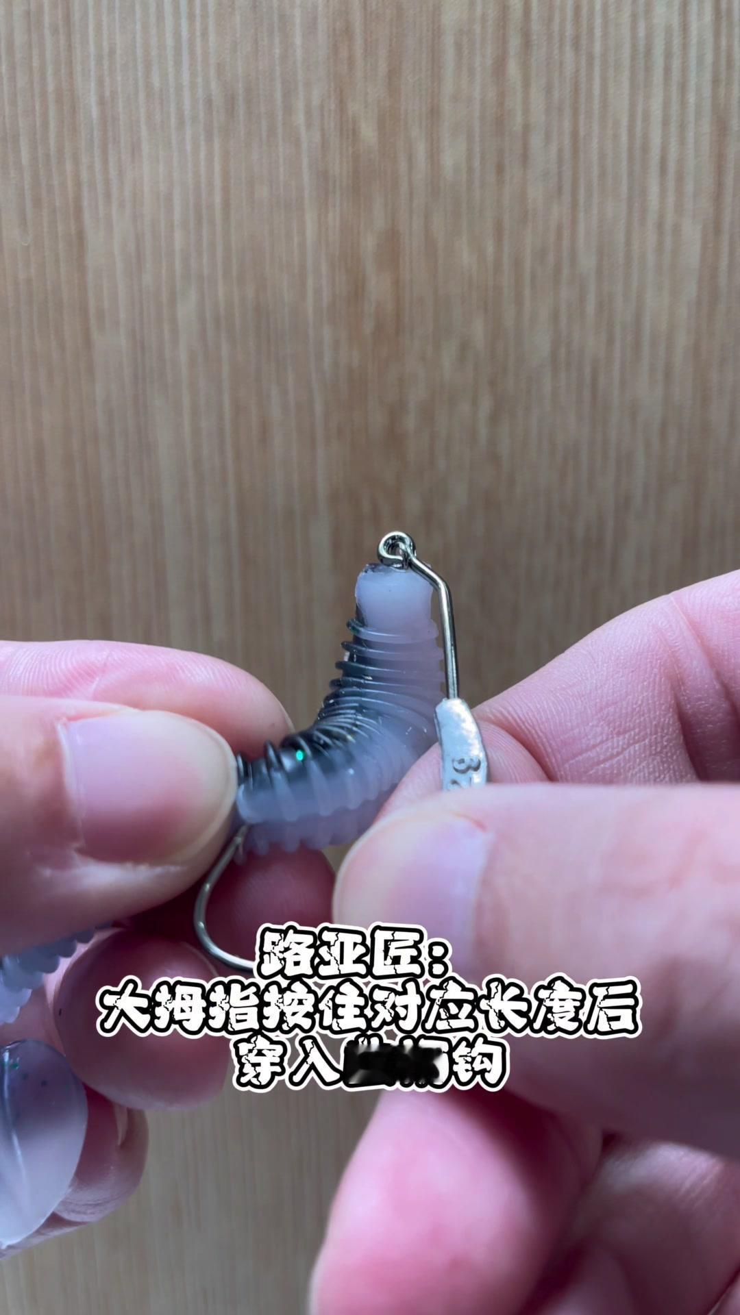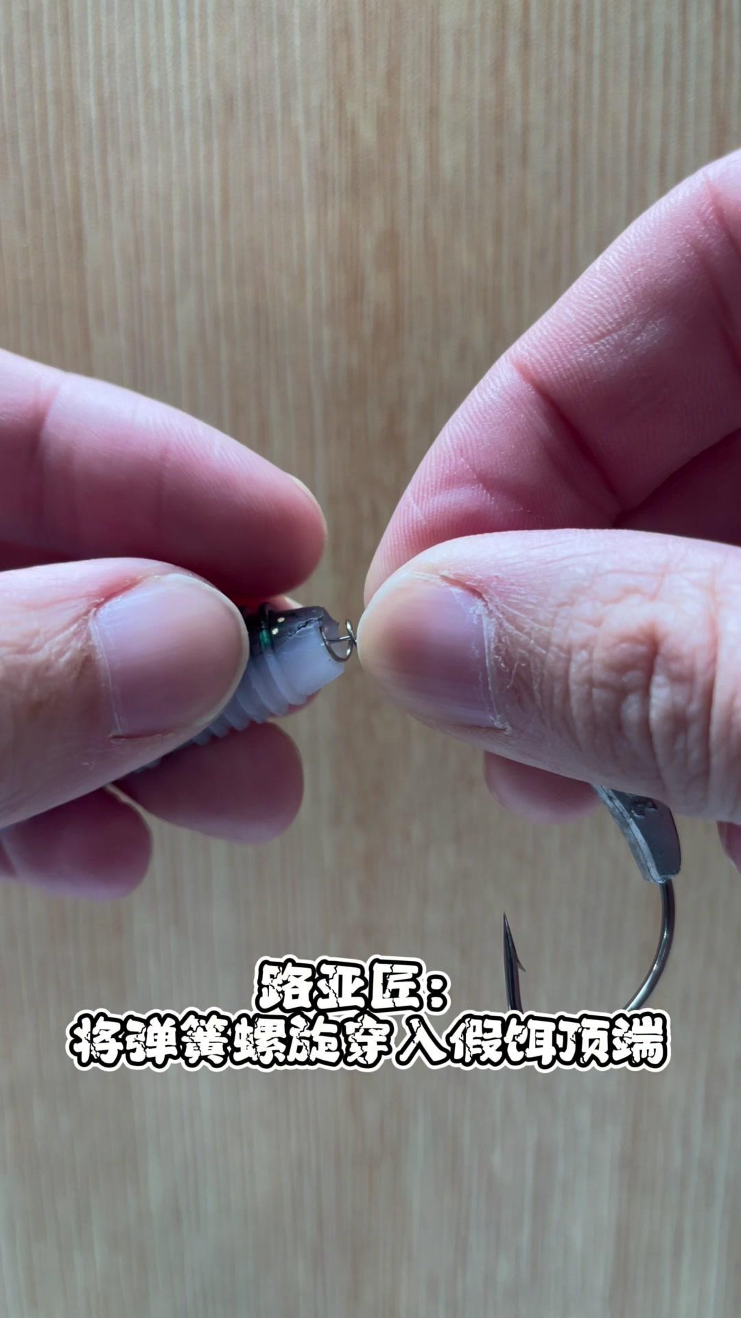 1️⃣将弹簧螺旋穿入夹饵顶端,要穿入夹饵顶端中心处。 2️⃣比对曲柄钩于加2长度,大拇指按住对应长度后穿入曲柄钩。 3️⃣大兄弟们,你学废了吗?学不废的请举手示意。