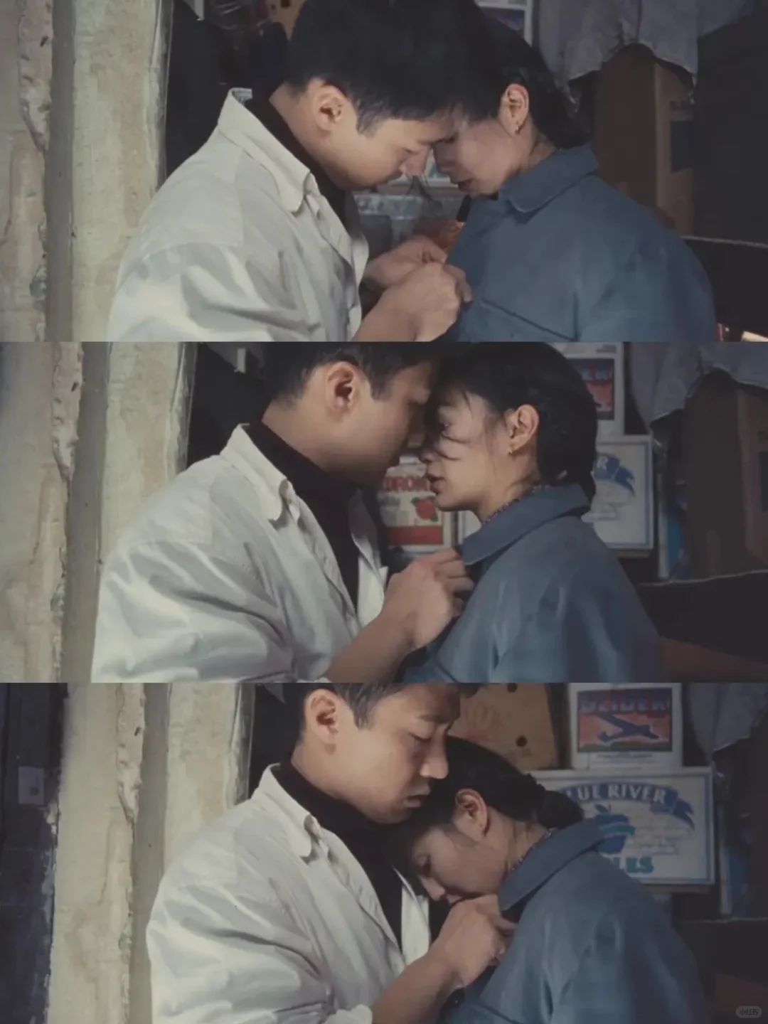 这部第一次擦出火花那场戏,吻前的低头闭眼,羞涩的把头埋入小军颈间,