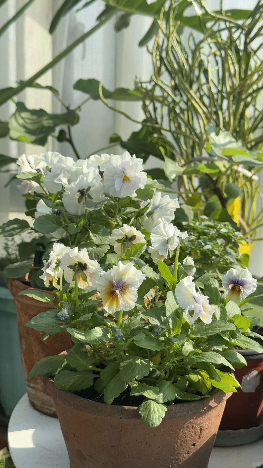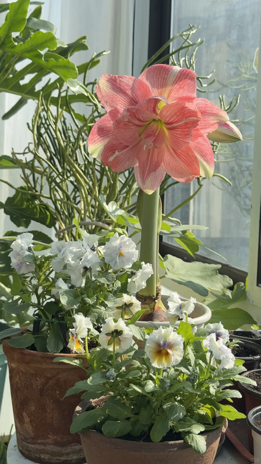 朱顶红 角堇 自己播种的角堇才六片叶子[失望R] 冬天想看花还是得买几盆开花成品[扯脸H] 我不贪多,也不追求品种,入的都是10元单盆的[暗中观察R] 能给绿意盎然的阳光房点缀一些色彩就好[太阳R]