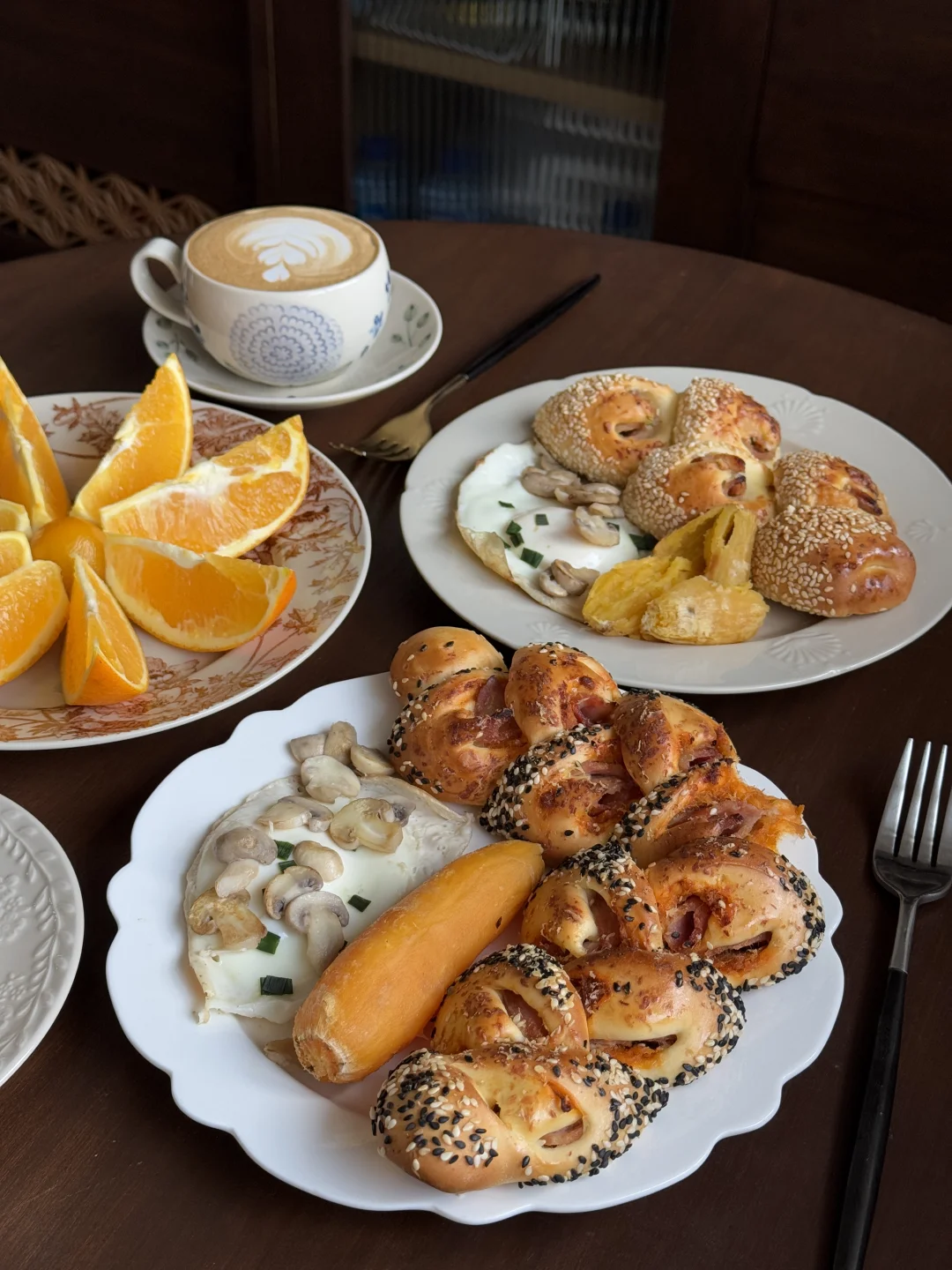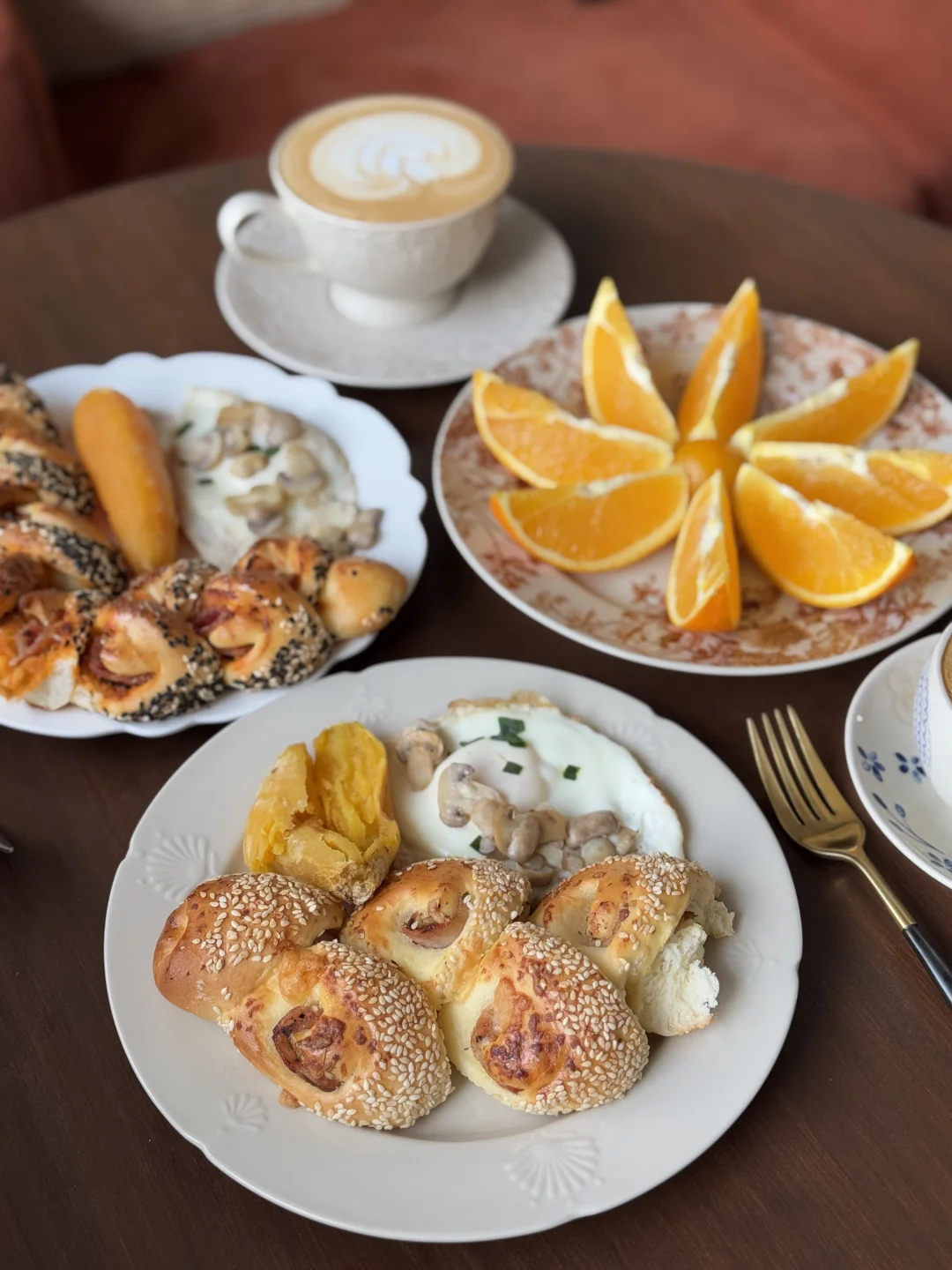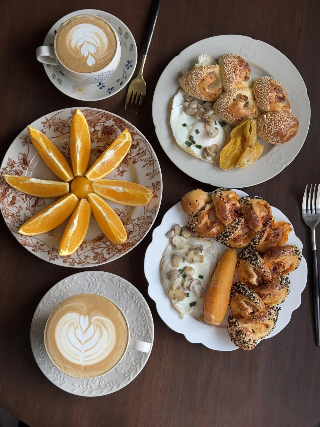 大家新周早安呀~ 昨天买了一些小小的 晚上睡前放进烤箱 预约了烤红薯功能 早上起来直接吃热腾腾的烤红薯 而且烤箱里还热着,直接用余温解冻了面包 冬日的快手热早餐轻松搞定 还有~喜欢今天的拉花