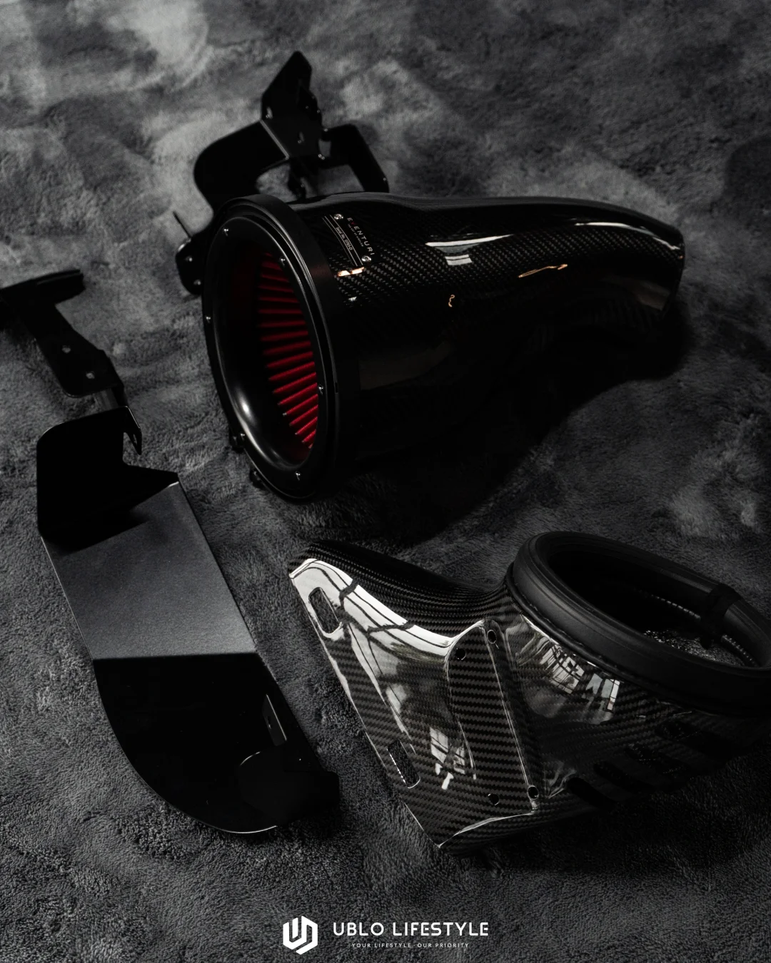 EVENTURI进气的进气滤网是鲜明的红色,外观是碳纤维Carbon Fiber,细腻的纹路就是有一种高级感,也是许多车友喜欢的原因😇