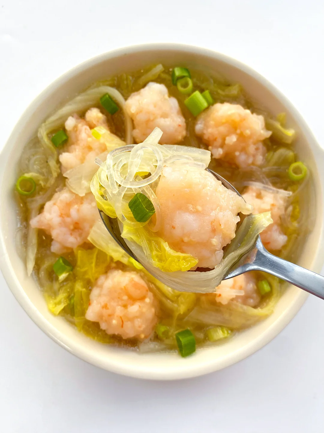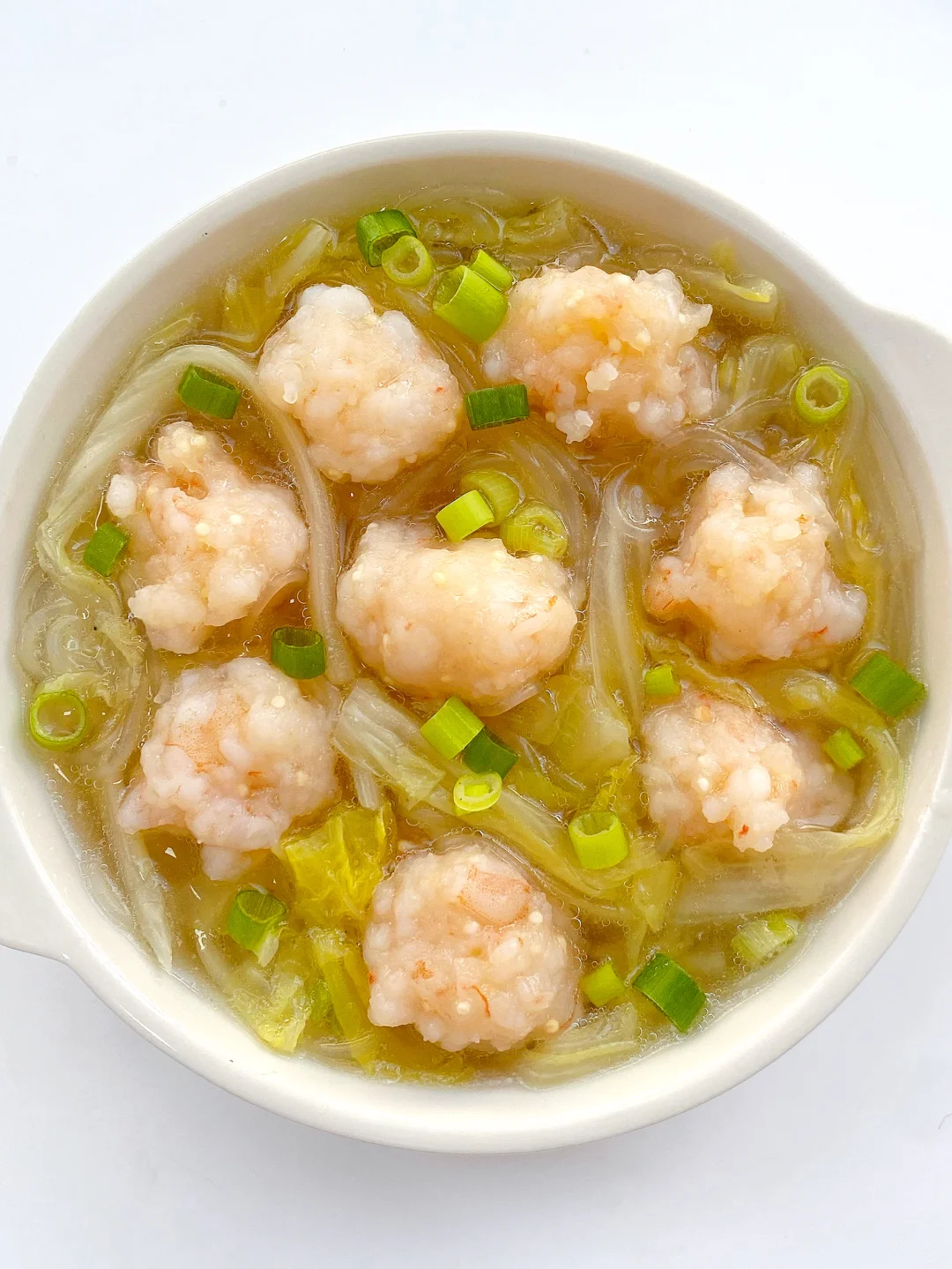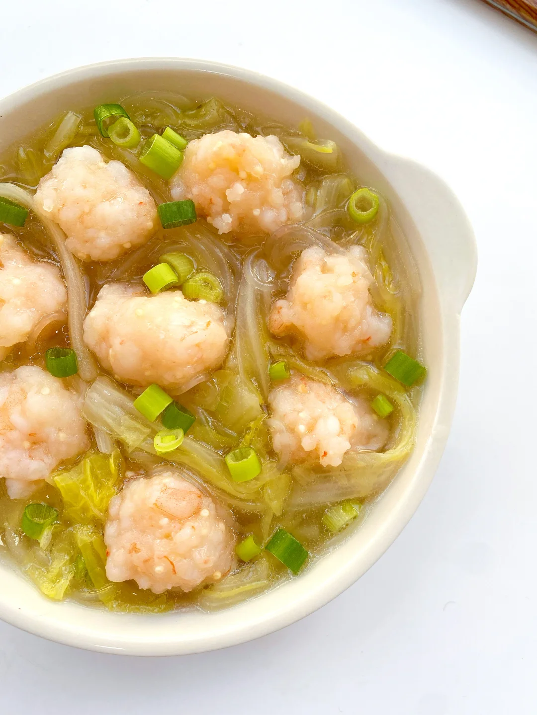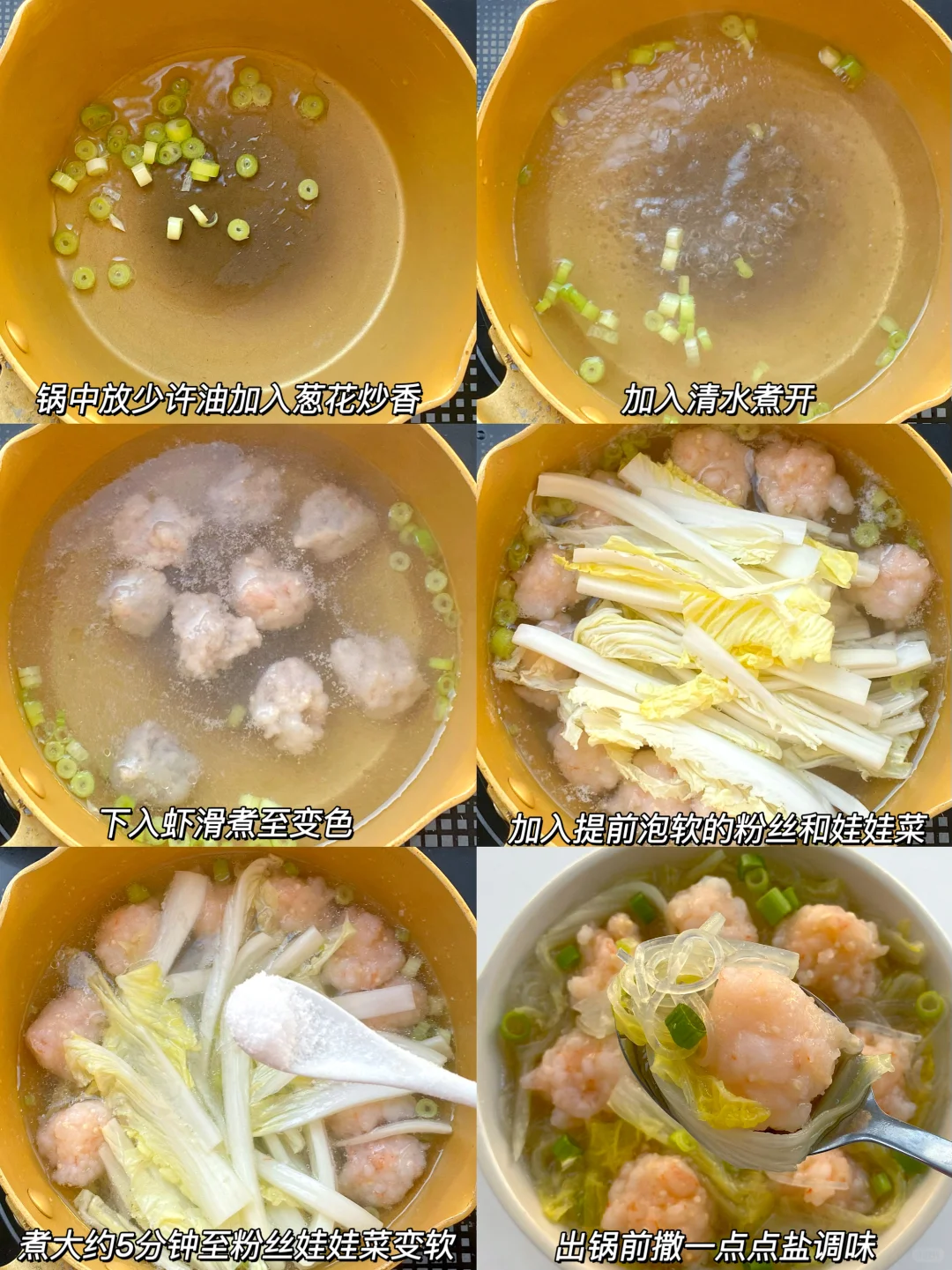 🍤今天做的这个娃娃菜虾滑粉丝汤真的是鲜掉眉毛了,娃娃菜煮出来的口感清甜,虾滑Q弹,真的是好清爽,一碗不够喝呀。 🍤蛋白质、维生素和碳水都有了,是适合全家一起喝的汤,对减脂期更是友好。 🧂调味只用到了一点点盐即可。