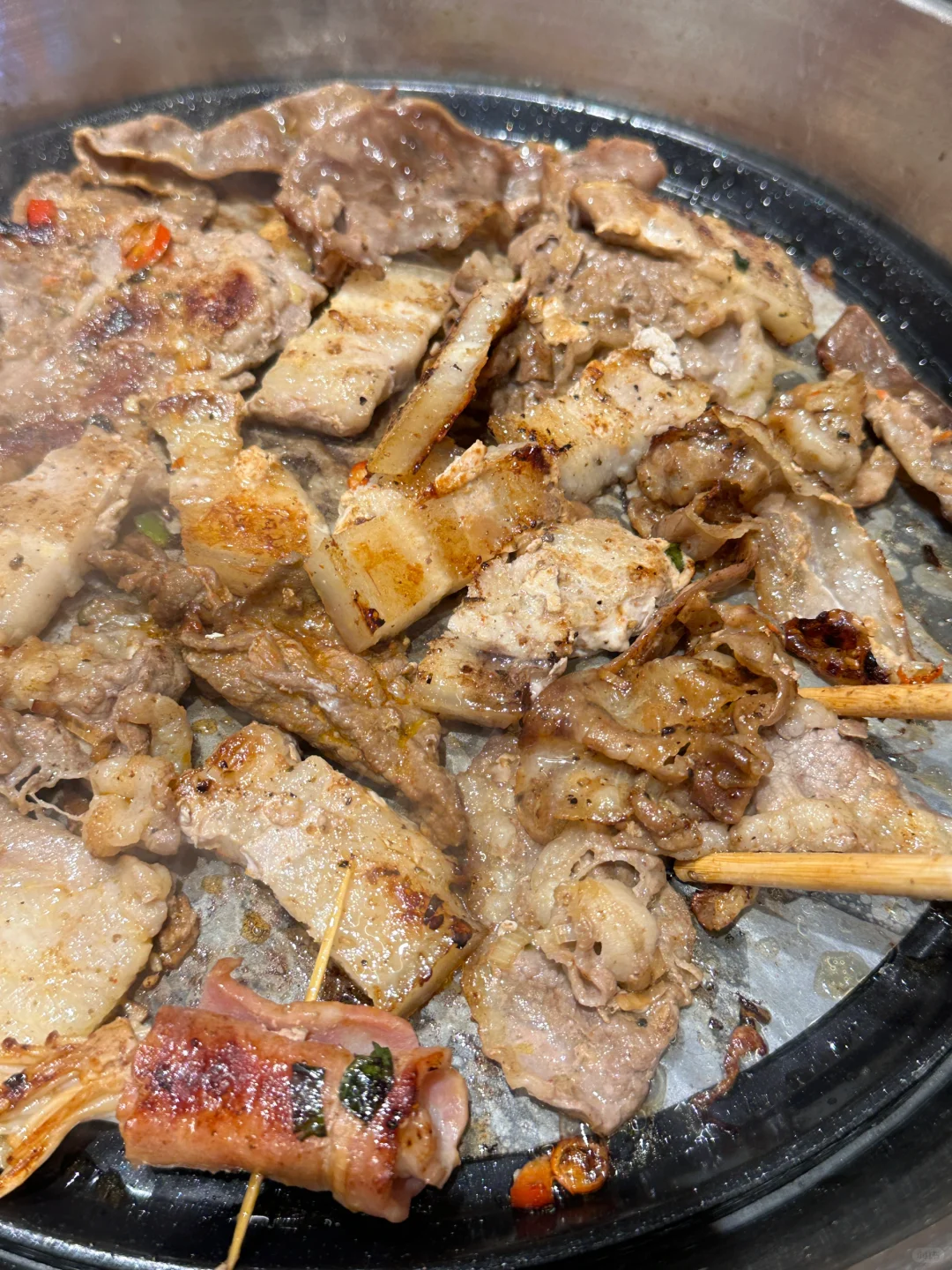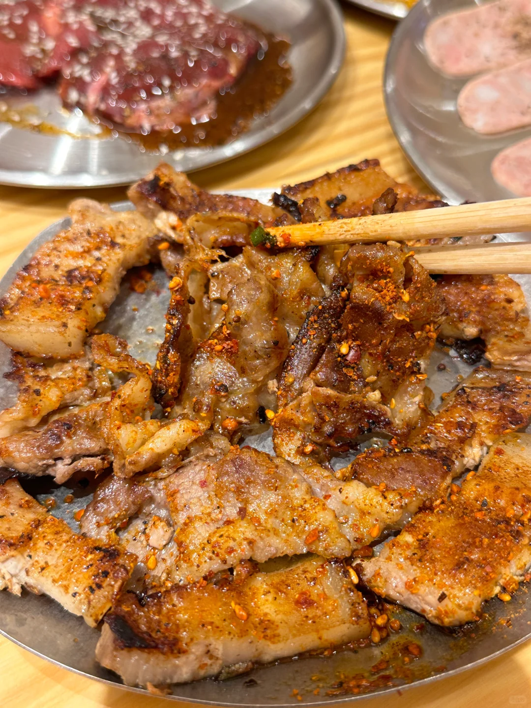 家人们谁懂啊!!! 没有什么比大冬天甩开膀子吃顿自助烤肉更丰富了! 而且钟鼓岭这家店又卷出了新高度!!! 肉食动物来到这里就走不动路!!! 各种新鲜现切的牛肉、吃烤肉少不了的厚切五花肉、猪梅肉多烤一会儿,颜色金黄、真的太香了!!! 还有冰激凌、水果、麻辣烫、冰凉粉、韩式拉面……无限量免费…… 叫(流浪泡泡破破烂烂烂肉店)