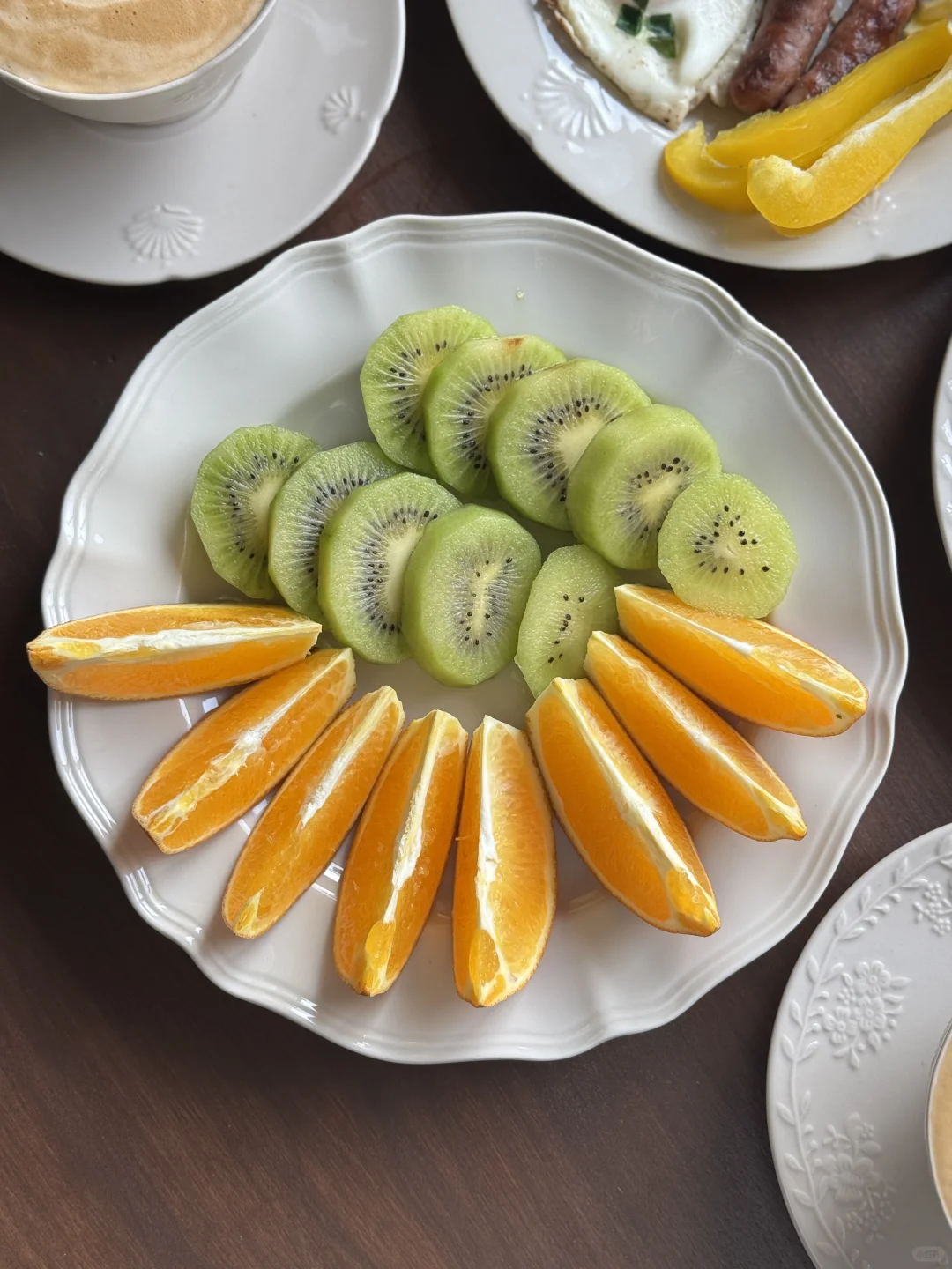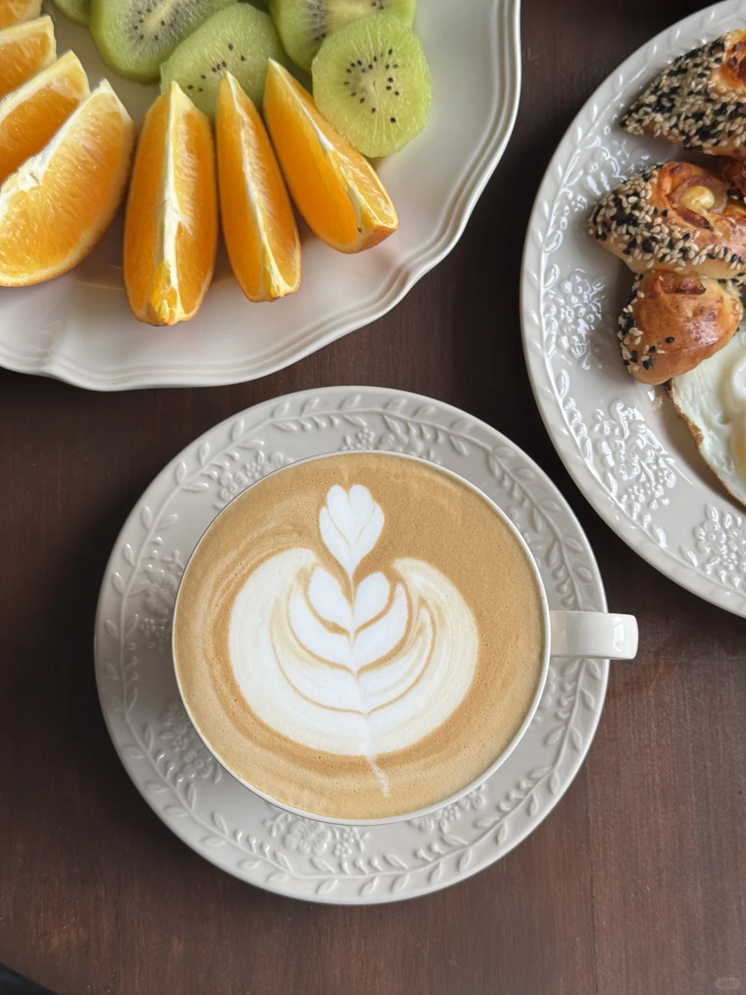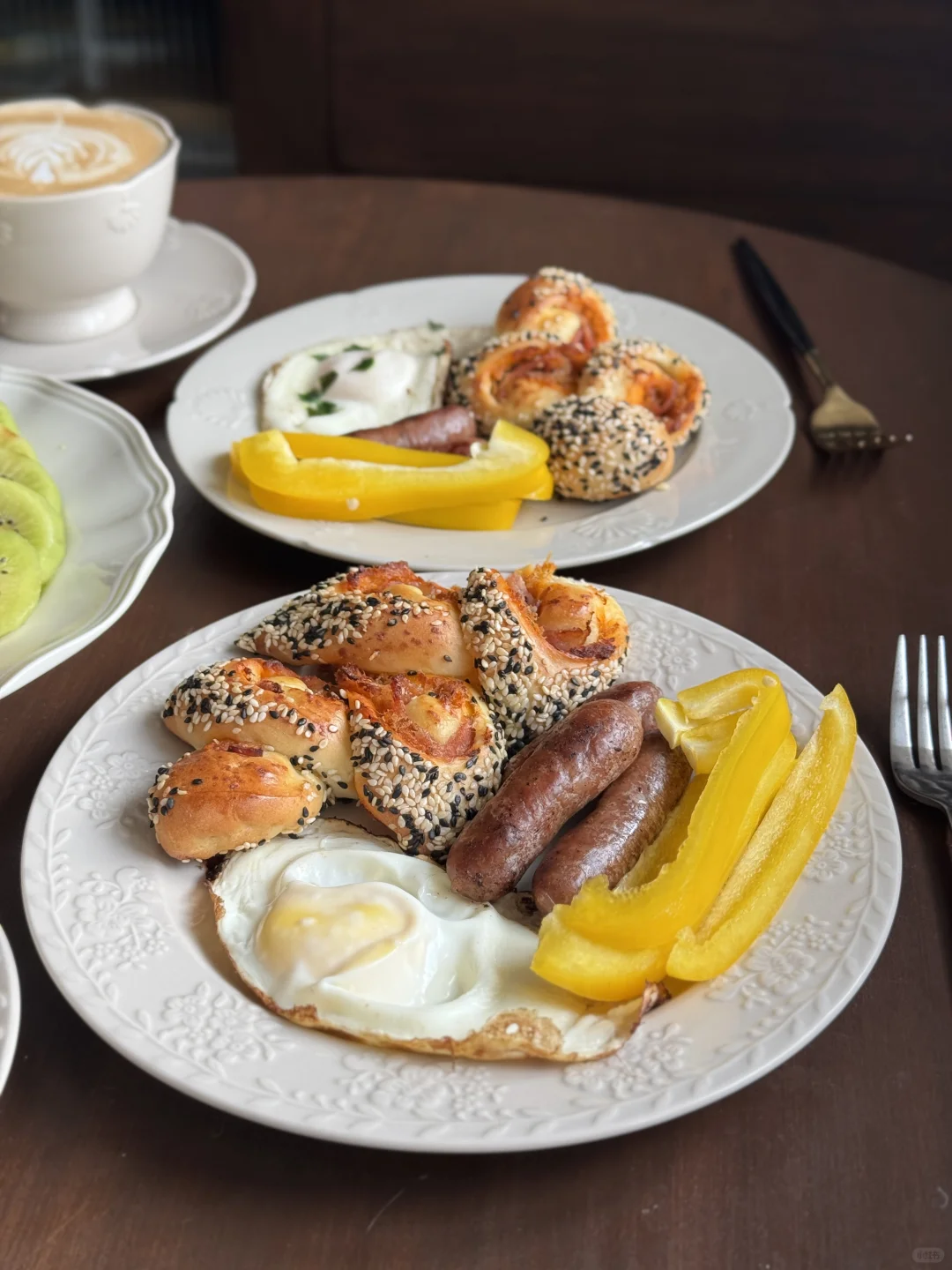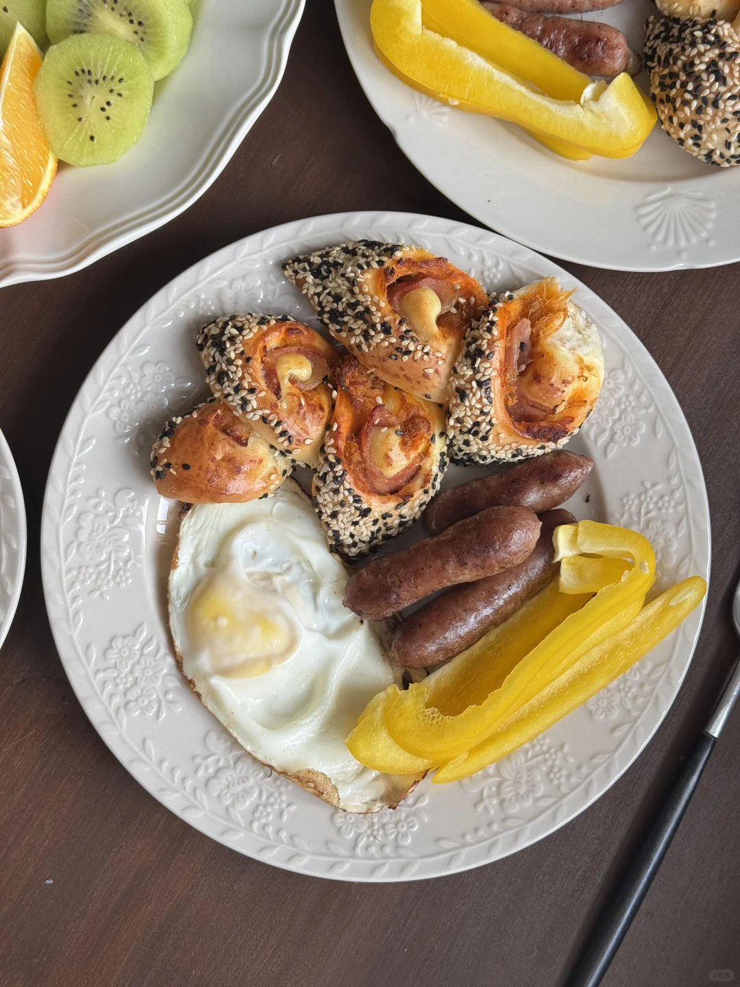 最近总是心不在焉的 做了早餐吃完都忘记发 可能冬天就是会让人慢半拍吧[扯脸H] 今日早餐: 培根麦穗面包 煎蛋🍳脆皮肠🥓甜椒🫑 水果:猕猴桃🥝橙子🍊 还有不能错过的拿铁☕️ 早晨发现没有牛奶了 赶紧去楼下的鲜奶站买了一瓶A2 今日份的拿铁是甜甜的[太阳R]