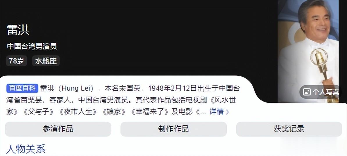 娱乐圈最离谱的瓜,台湾演员雷洪必须算一个。