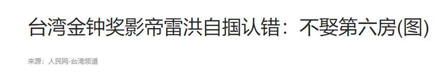 人民网-台湾频道——台湾金钟奖影帝雷洪自掴认错:不娶第六房
