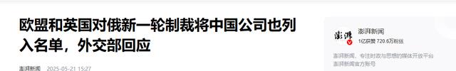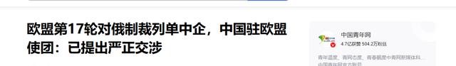 更让人感到气愤的是,欧盟在对俄罗斯实施第17轮制裁的时候,还把中国在俄罗斯的企业给带上了。